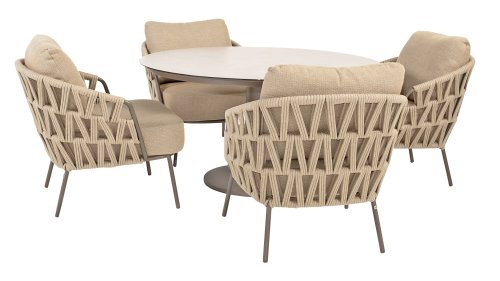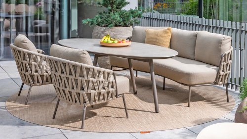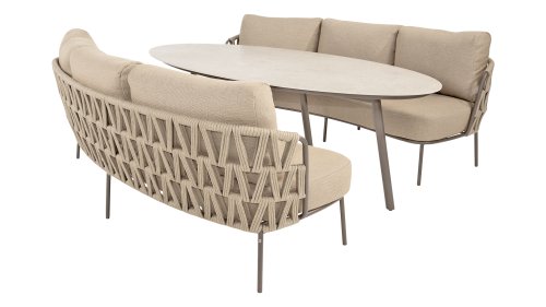 De 4 Seasons Outdoor Mallorca Low Dining uit de nieuwe Collectie 2026 is de perfecte balans tussen loungen en dineren in stijl. Deze set combineert rustieke elegantie met een verfijnde afwerking en is een echte eyecatcher in elke tuin of op elk terras. De Mallorca serie is uniek, aangezien het de enige Low Dining-serie is binnen 4 Seasons die ook een bank te bieden heeft. De bank en stoelen zijn leuk te combineren met de Salute low dining tafel.