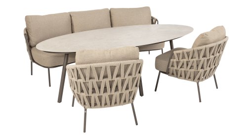 De 4 Seasons Outdoor Mallorca Low Dining uit de nieuwe Collectie 2026 is de perfecte balans tussen loungen en dineren in stijl. Deze set combineert rustieke elegantie met een verfijnde afwerking en is een echte eyecatcher in elke tuin of op elk terras. De Mallorca serie is uniek, aangezien het de enige Low Dining-serie is binnen 4 Seasons die ook een bank te bieden heeft. De bank en stoelen zijn leuk te combineren met de Salute low dining tafel.