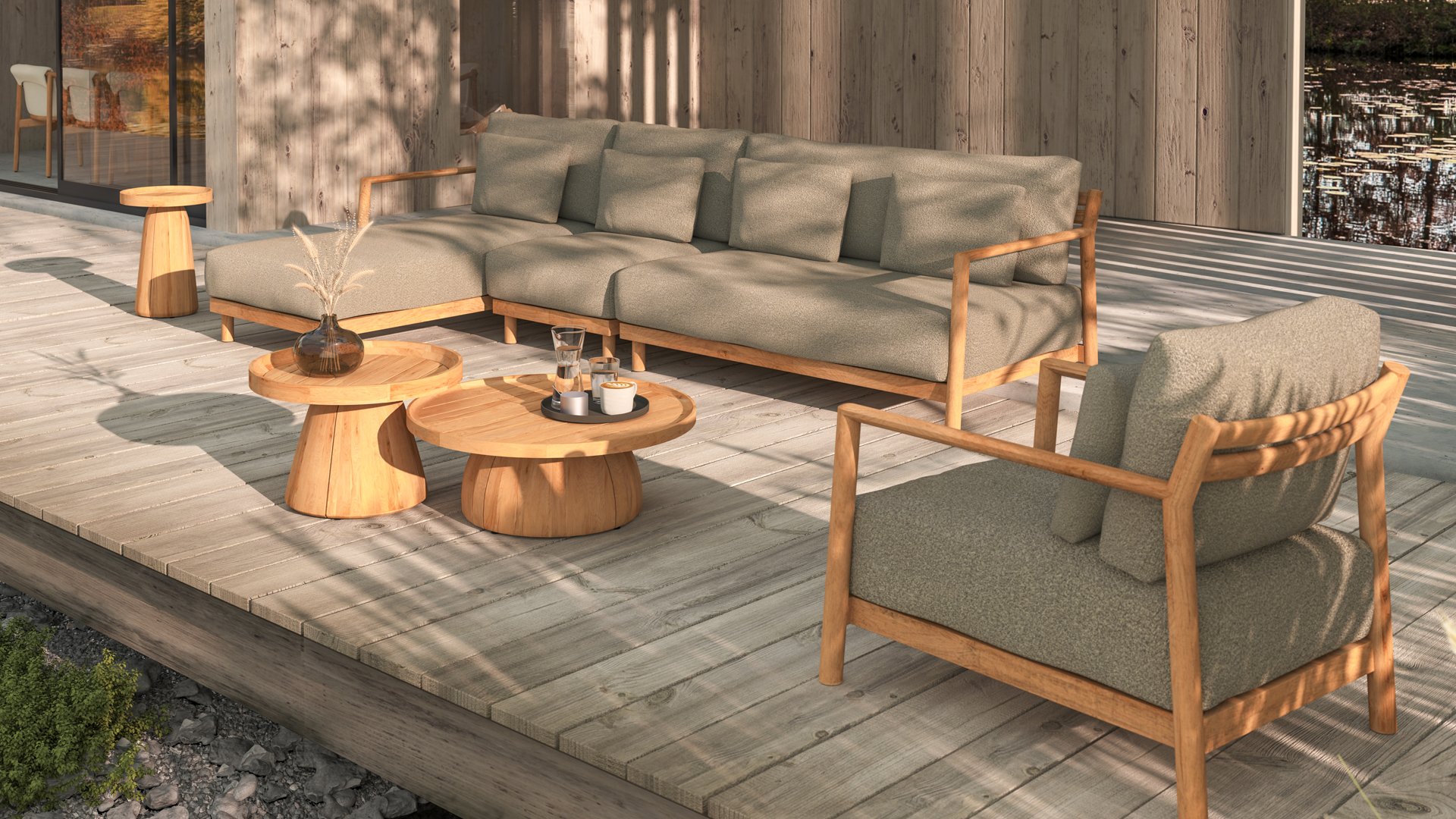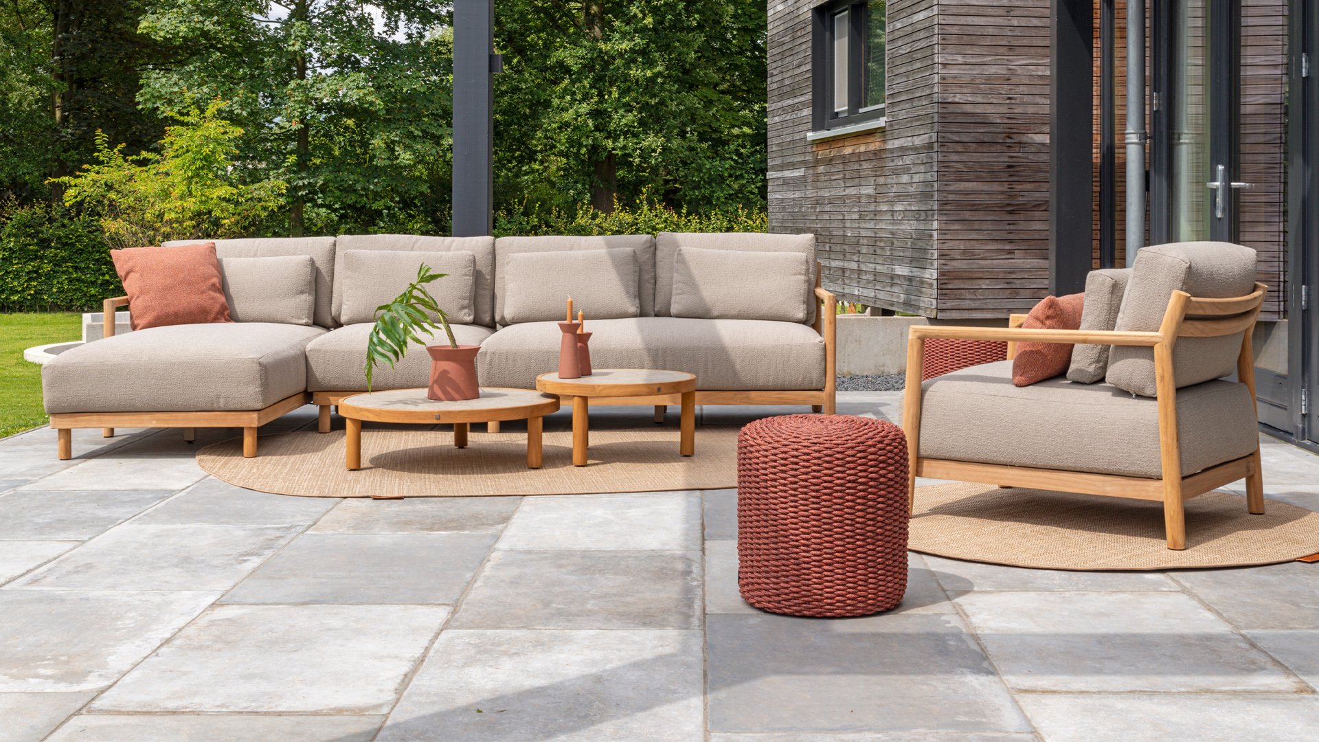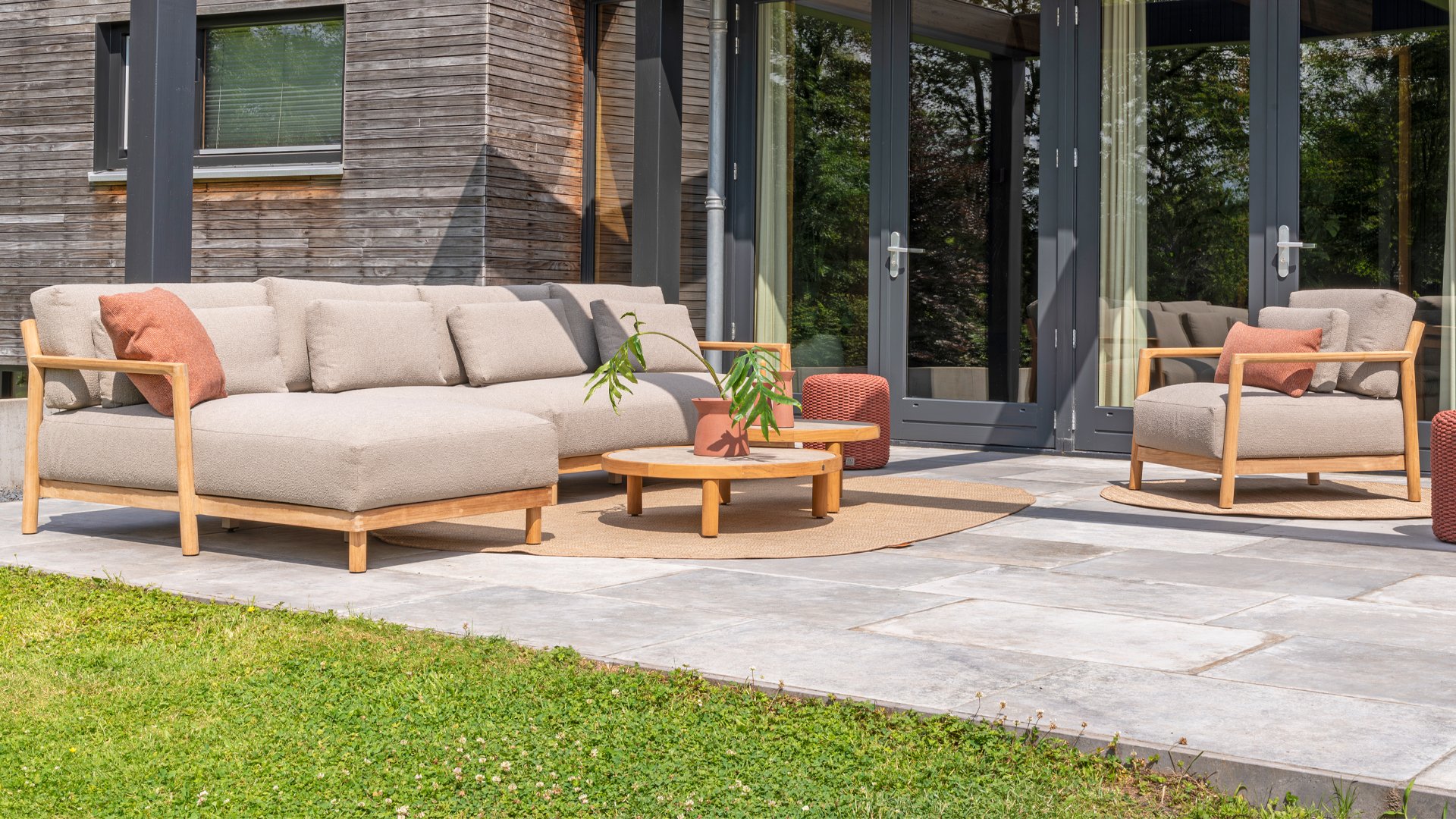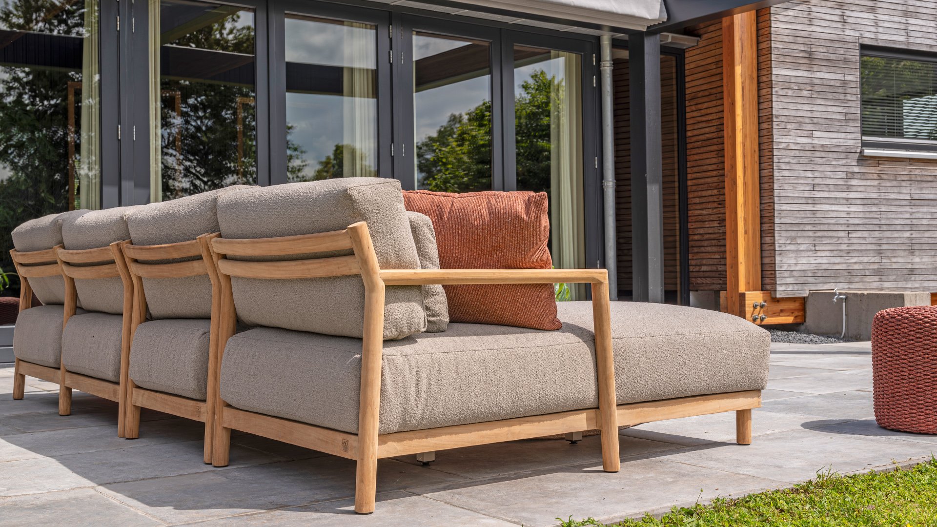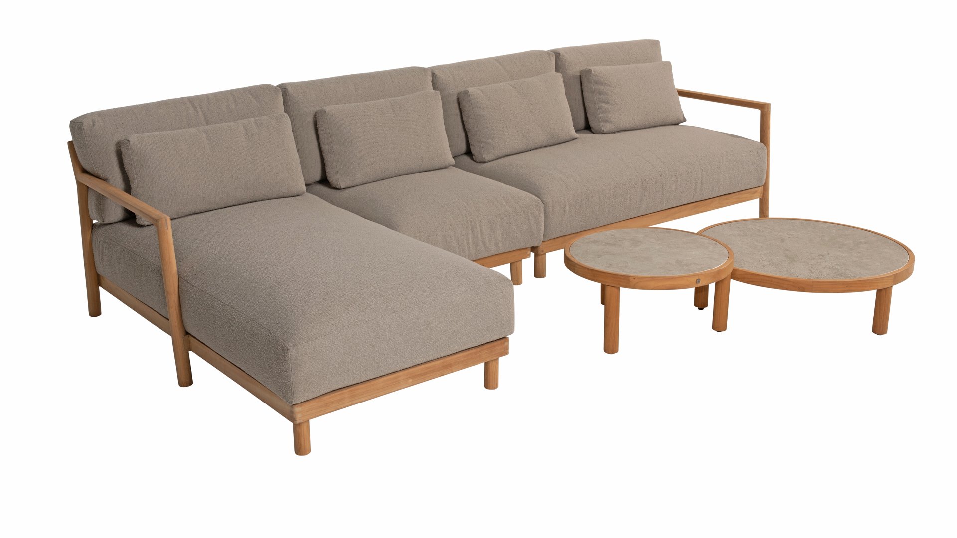 Ontdek de perfecte combinatie van stijl en comfort met onze prachtige teakhouten loungeset 4Seasons Outdoor Marie! Deze set is vervaardigd uit hoogwaardig teakhout, bekend om zijn duurzaamheid en weerbestendigheid. De warme boucle kussens zorgen voor een luxe uitstraling en optimaal zitcomfort, ideaal voor elke buitenruimte.