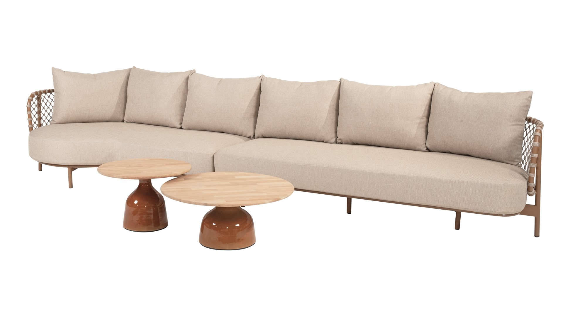 Ervaar tijdloze luxe met de Martinique loungeset van 4 Seasons Outdoor. Het opvallende geknoopte rope-design geeft een speels maar verfijnd karakter, terwijl het amberkleurige frame warmte en sfeer toevoegt aan je tuin of terras. Deze set is perfect voor wie een combinatie van stijl en comfort zoekt.
