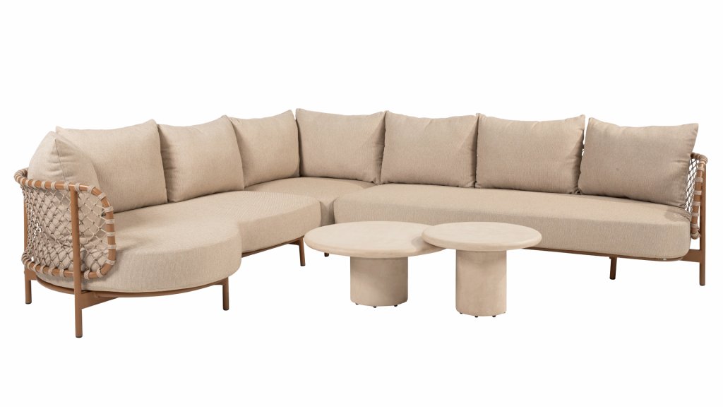 Ervaar tijdloze luxe met de Martinique loungeset van 4 Seasons Outdoor. Het opvallende geknoopte rope-design geeft een speels maar verfijnd karakter, terwijl het amberkleurige frame warmte en sfeer toevoegt aan je tuin of terras. Deze set is perfect voor wie een combinatie van stijl en comfort zoekt.