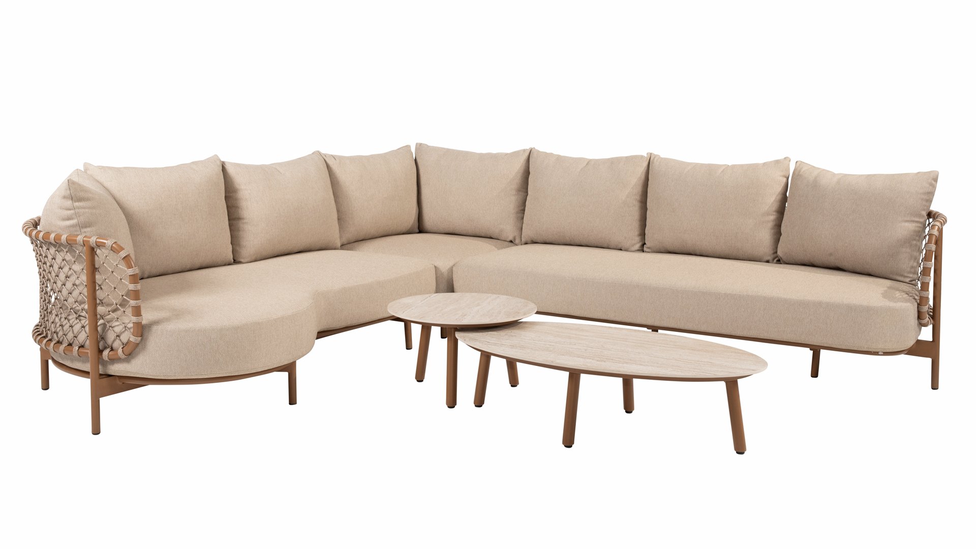 Ervaar tijdloze luxe met de Martinique loungeset van 4 Seasons Outdoor. Het opvallende geknoopte rope-design geeft een speels maar verfijnd karakter, terwijl het amberkleurige frame warmte en sfeer toevoegt aan je tuin of terras. Deze set is perfect voor wie een combinatie van stijl en comfort zoekt.