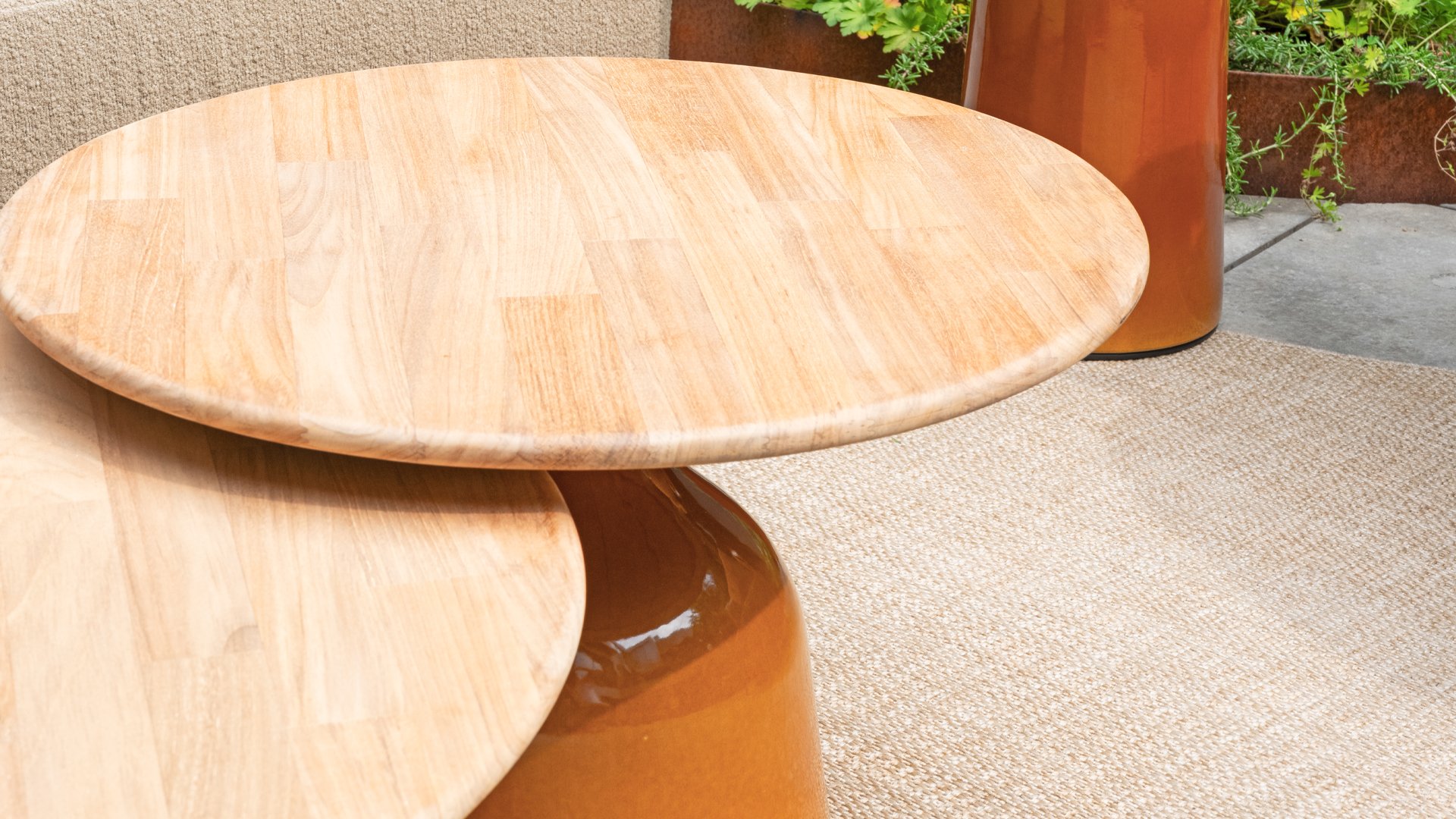De 4 Seasons Outdoor June salontafelserie is een ode aan verfijnde eenvoud en natuurlijke luxe. Met een rond teakhouten blad en een opvallend keramisch high-gloss onderstel brengt June warmte en een moderne touch samen in één krachtig ontwerp.