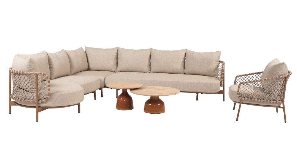 Ervaar tijdloze luxe met de Martinique loungeset van 4 Seasons Outdoor. Het opvallende geknoopte rope-design geeft een speels maar verfijnd karakter, terwijl het amberkleurige frame warmte en sfeer toevoegt aan je tuin of terras. Deze set is perfect voor wie een combinatie van stijl en comfort zoekt.