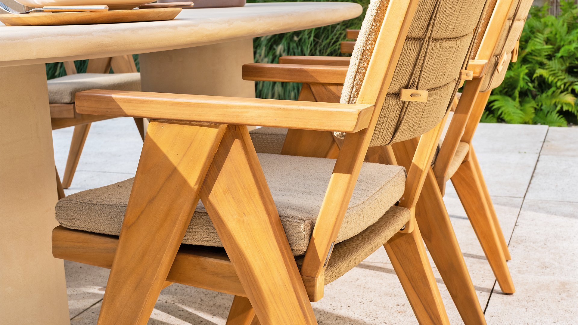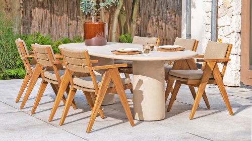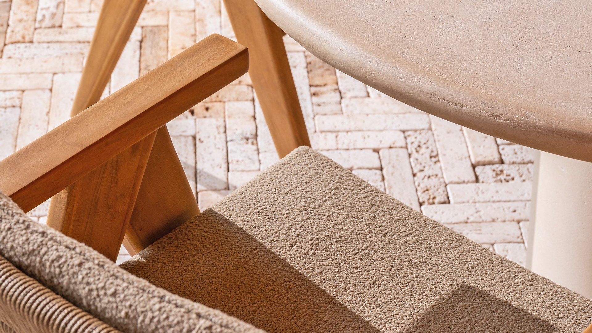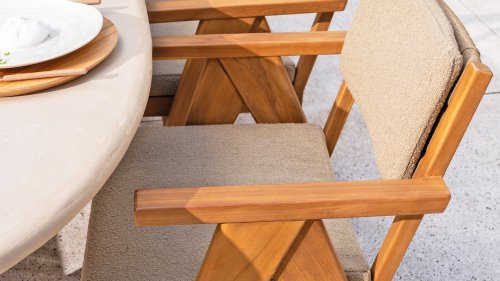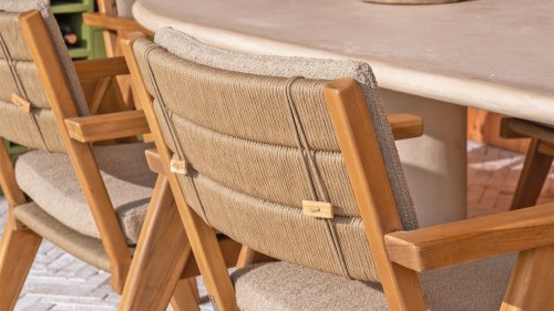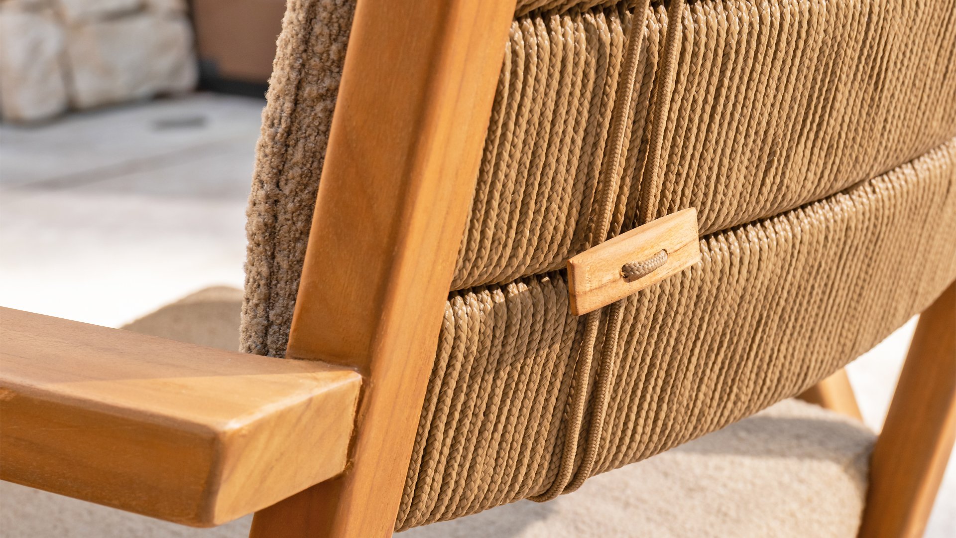 - Stijlvol en tijdloos design: De combinatie van teakhout en taupe bouclé creëert een elegante, rustgevende sfeer in elke tuin.