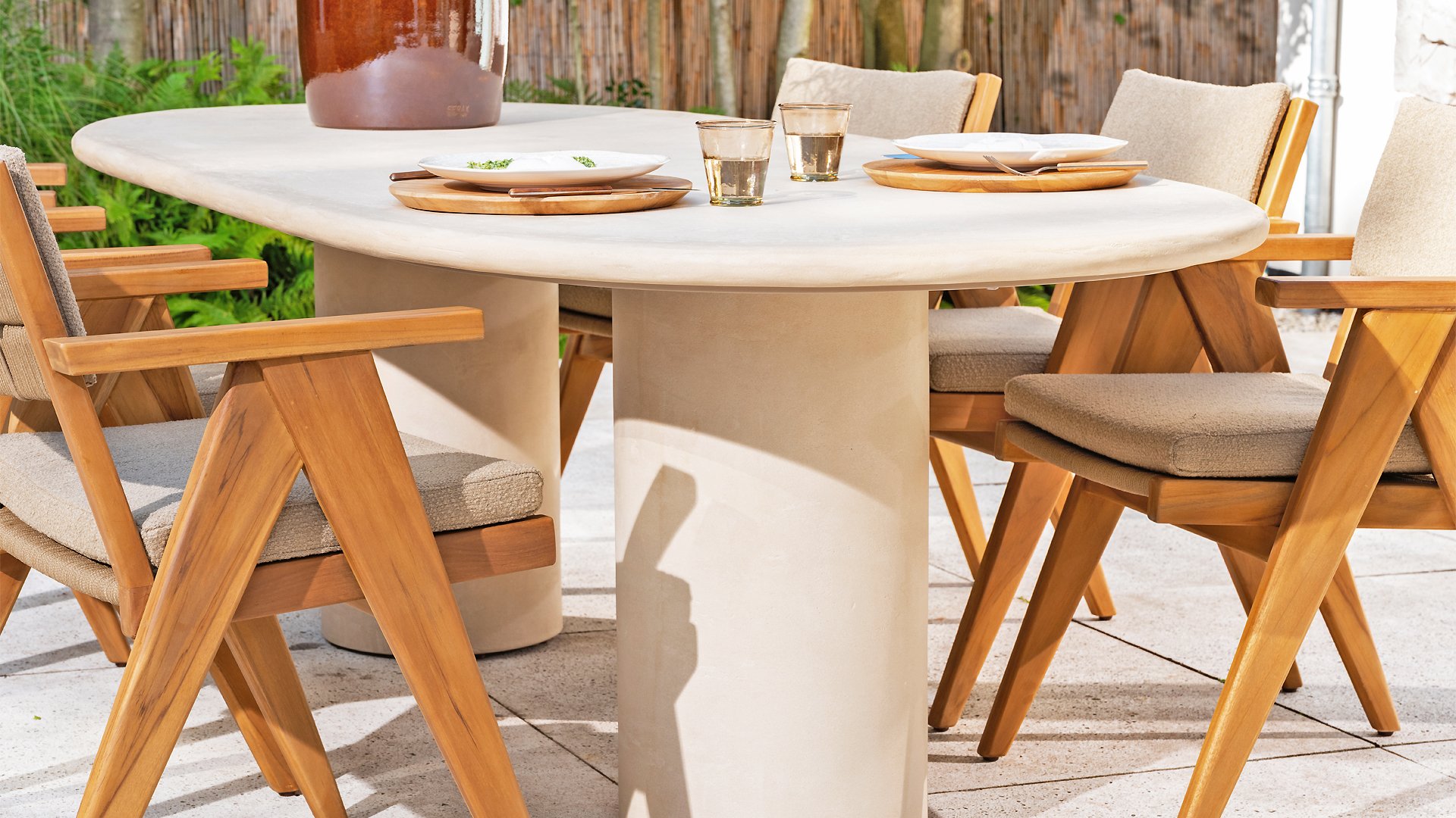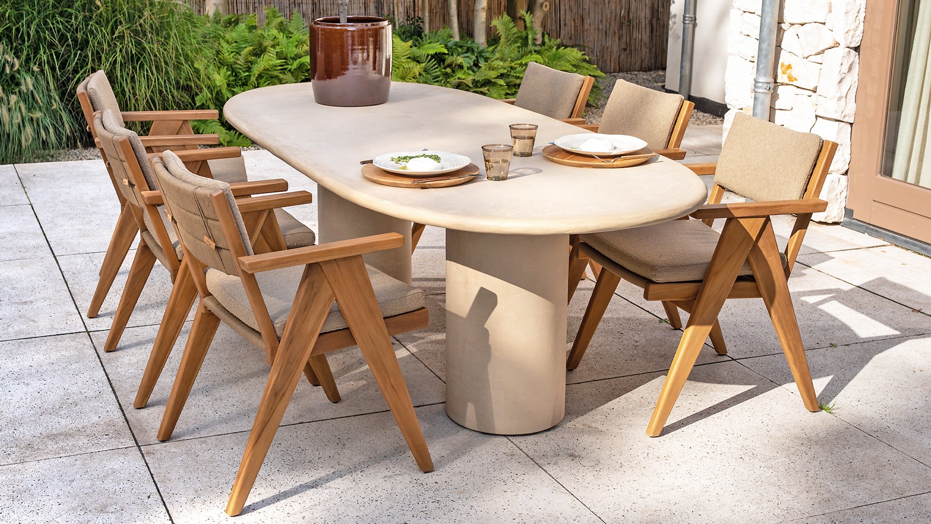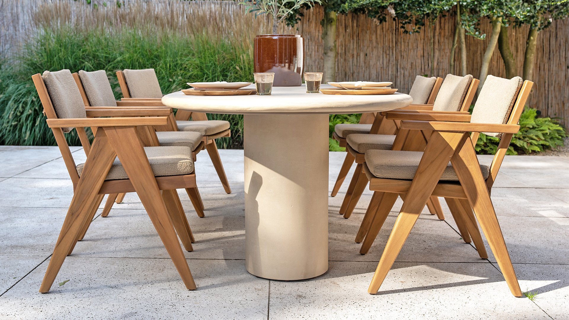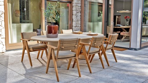 - Stijlvol en tijdloos design: De combinatie van teakhout en taupe bouclé creëert een elegante, rustgevende sfeer in elke tuin.
