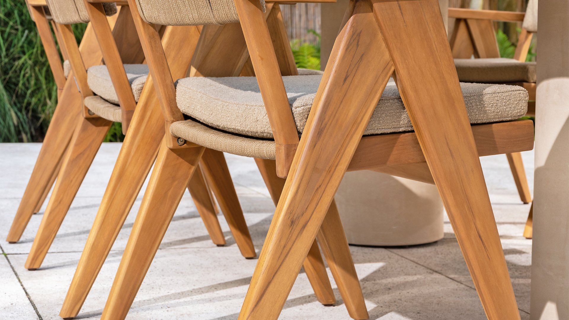- Duurzaam teakhouten frame: Het robuuste materiaal is bestand tegen weer en wind en behoudt zijn mooie uitstraling jarenlang.