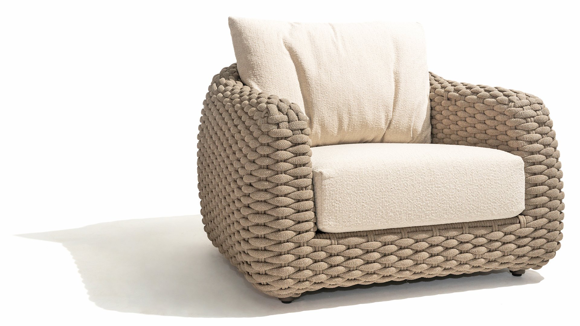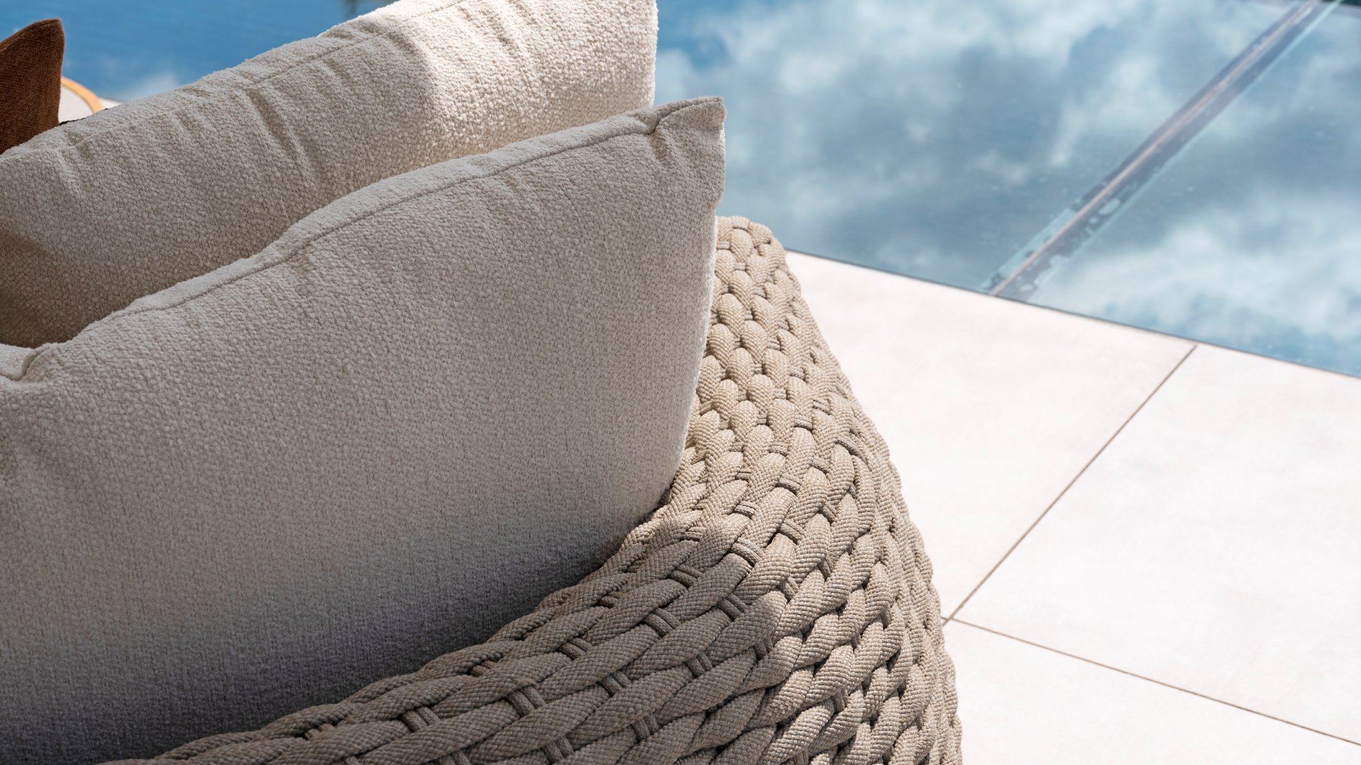 Dit prachtige materiaal is perfect voor buitengebruik, want Taste Rope is niet zo maar een gewone veter waar u uw schoenen mee strikt. Taste gebruikt zeer hoge kwaliteits Rope gemaakt van 100% SDP (Slution Dyed Polypropylene). Dit materiaal is extreem sterk en heeft een zeer klein rekbaarheids percentage. Polyproylene is op olie basis waardoor vuil en verontreiniging nauwelijks in kan dringen, net als onze kussens. Taste biedt exclusieve designs, waarbij hand geweven Rope patronen en technieken worden gebruikt.