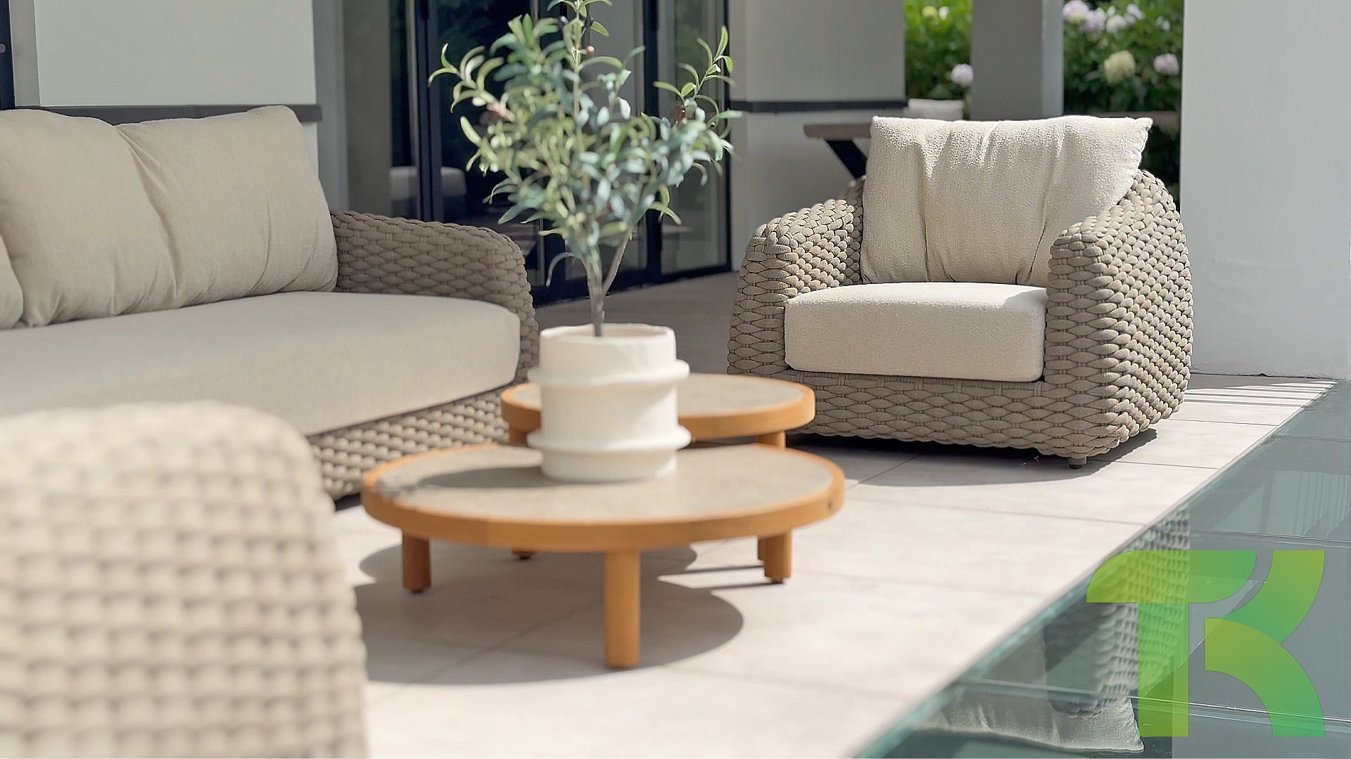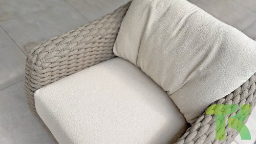 - Inclusief kussens: De Loungeset wordt geleverd met comfortabele kussens, waardoor je een uitnodigende en relaxte plek creëert om te genieten van je buitenruimte. De boucle stof is helemaal hip, en een nieuwe trend in tuinmeubelland.