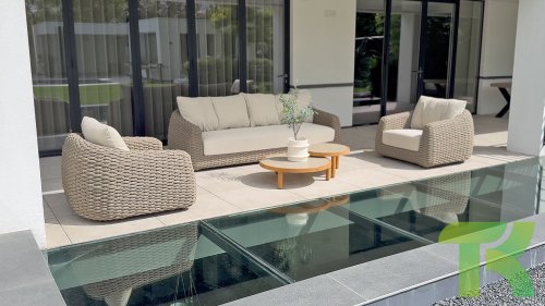 - Weerbestendig materiaal: Zowel het frame als de kussens zijn gemaakt van weerbestendige materialen, zodat je zorgeloos kunt genieten van je tuinmeubelen, ongeacht de weersomstandigheden.