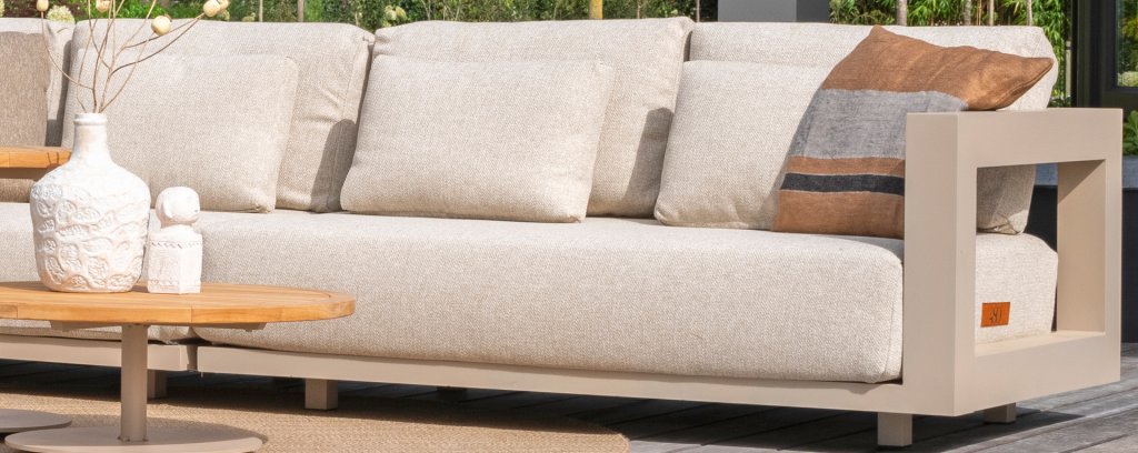 Het 4SO Metropolitan aluminium loungeset van kwaliteitsmerk 4 Seasons Outdoor is niet zomaar een lounge. Deze stijlvolle 4SO Lounge hoekbank is gemaakt van hoogwaardige materialen en ziet er indrukwekkend uit. De extra dikke olefin kussens biedt het beste comfort en geeft je het ultieme gevoel van vrije tijd. Het frame van de 4 Seasons Metropolitan bankstel opent aan de zijkant om het terras een ruimtelijk gevoel te geven. Nu In de trendy Latte Kleur!