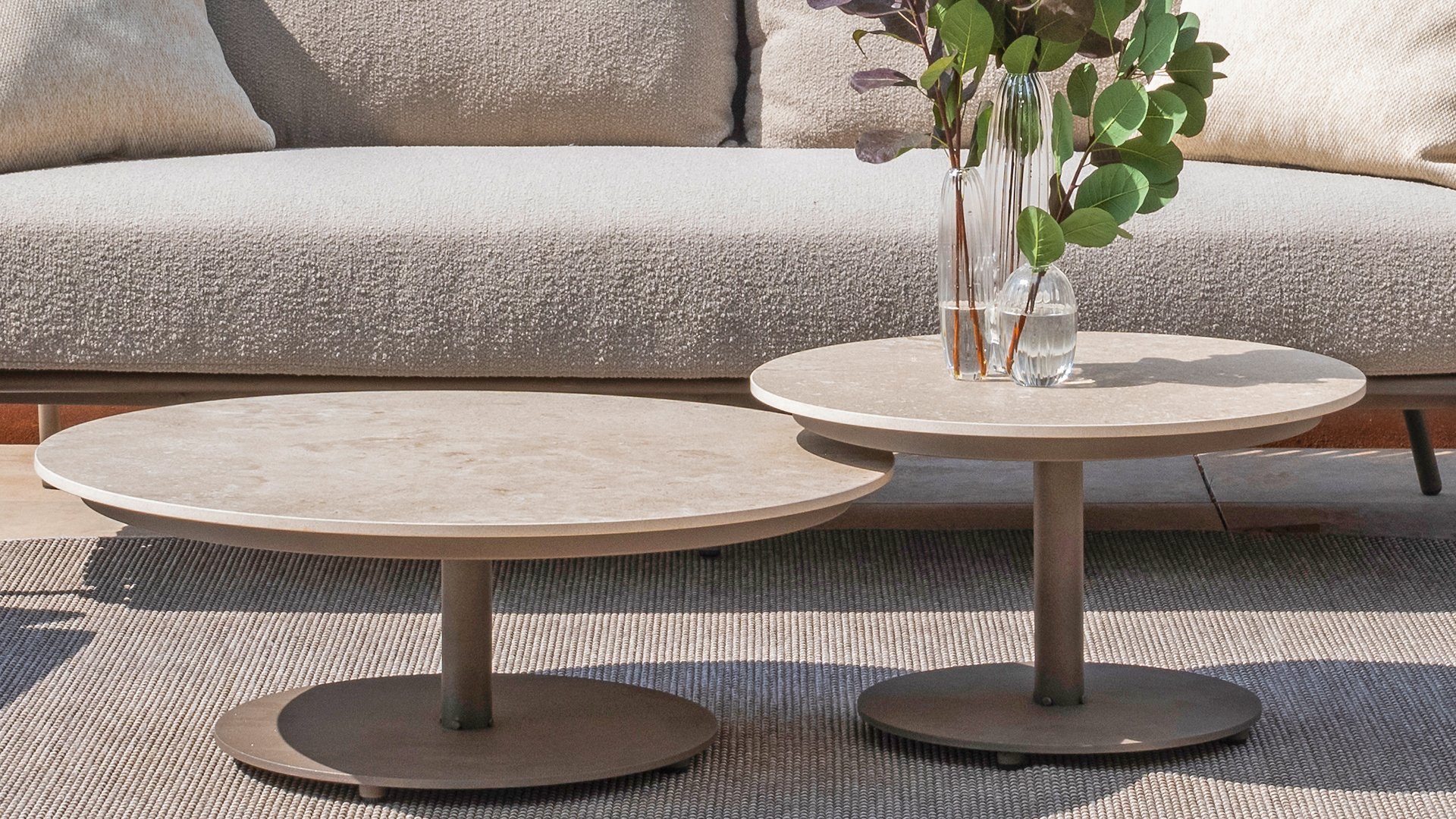 De Boaz tafelserie bestaat uit 3 formaten en 2 kleuren Terre en Latte.