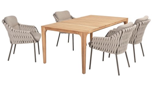Met de Liam tafel van Taste 4SO kunt u genieten van de tijdloze charme en duurzaamheid van teakhout terwijl je dineert in de open lucht. Verkrijgbaar in volledig teakhout en teakhout-keramiek: