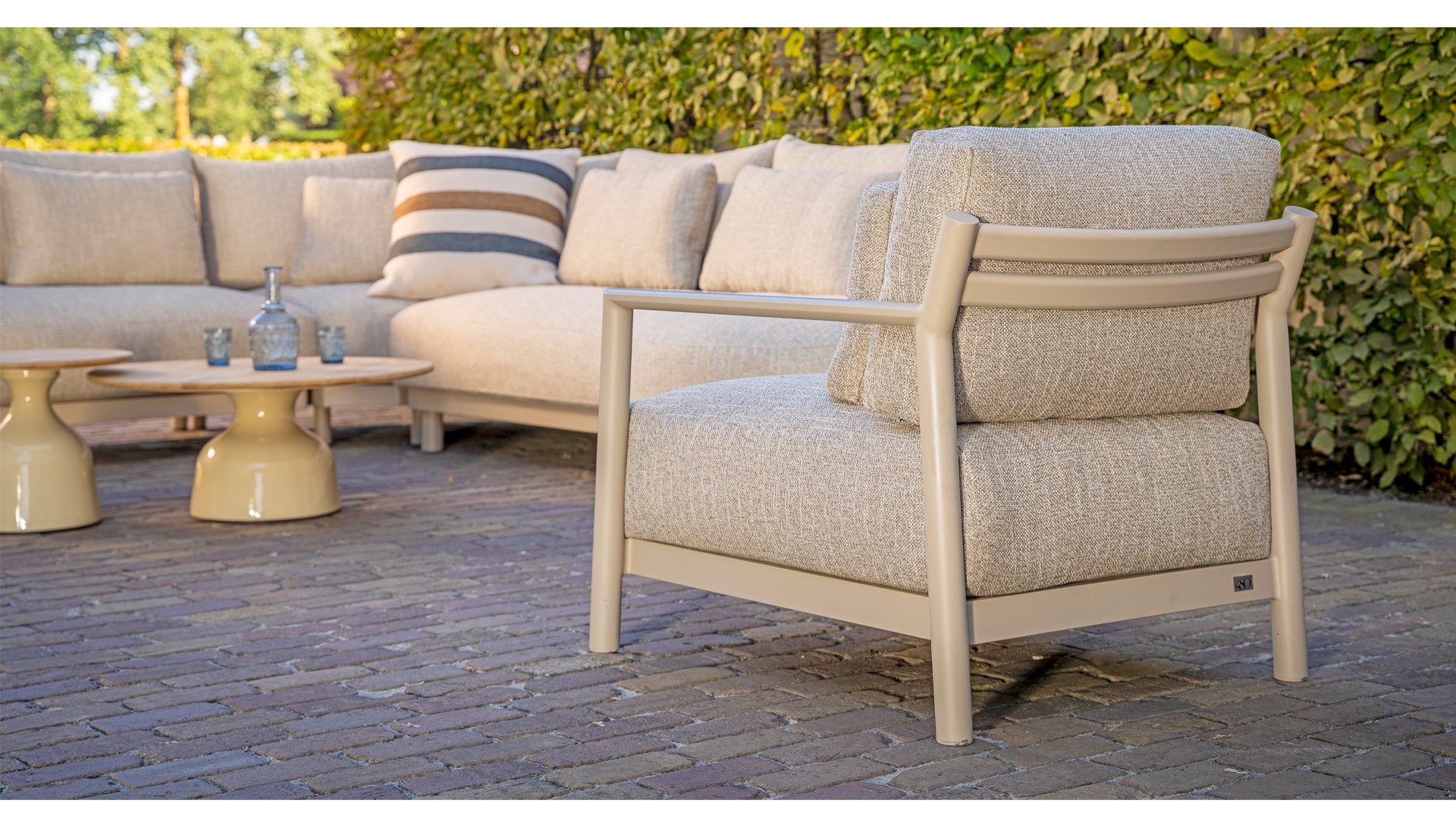 Ontdek de 4 Seasons Outdoor Mykonos loungeset – een stijlvolle ode aan het gelijknamige Griekse eiland, waar luxe, rust en elegantie samenkomen. Net zoals Mykonos zelf een sfeer van pure ontspanning uitstraalt, brengt deze loungeset datzelfde gevoel naar jouw terras of tuin. Zoals je van 4 Seasons Outdoor mag verwachten, is de kwaliteit onovertroffen. De set is vervaardigd van all weather materiaal van topniveau, waardoor regen, zon en zout geen enkele kans krijgen. Dankzij deze duurzame afwerking behoudt de loungeset jarenlang zijn luxe uitstraling. En om dat vertrouwen te onderstrepen, ontvang je maar liefst 5 jaar garantie – een geruststellende zekerheid dat je investeert in blijvende kwaliteit. Met zijn royale vormen, verfijnde lijnen en uitnodigende zitcomfort creëert de Mykonos een sfeer die doet denken aan zwoele avonden aan de Egeïsche Zee. Hier komt het ultieme buitenleven écht tot leven.