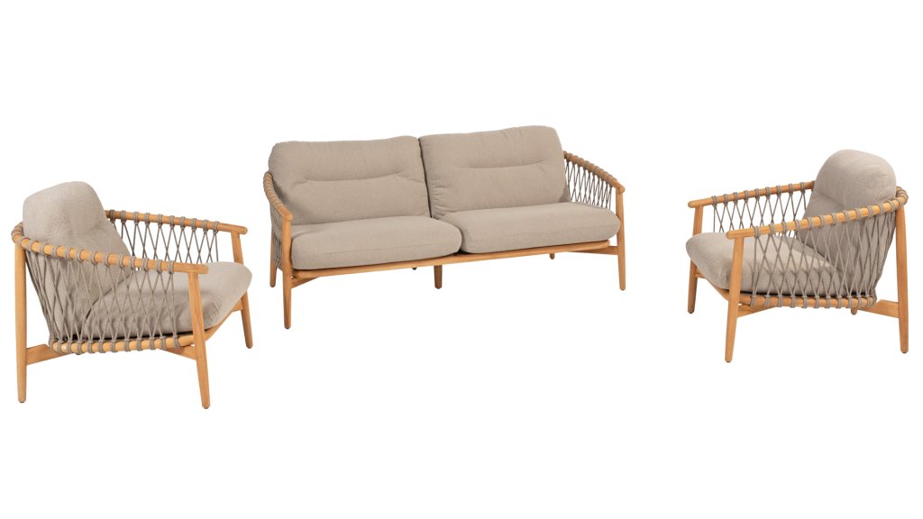 Ontdek de perfecte combinatie van stijl en comfort met de Nora lounge van 4 Seasons Outdoor. Dit loungeset is een prachtig voorbeeld van design tot in detail, waarbij alle passie is verwerkt in de Nora lounge serie. Het teakhouten frame met elegante rondingen wordt geaccentueerd door opvallende Rope patronen, wat deze stoel een echte eyecatcher maakt in je buitenruimte.