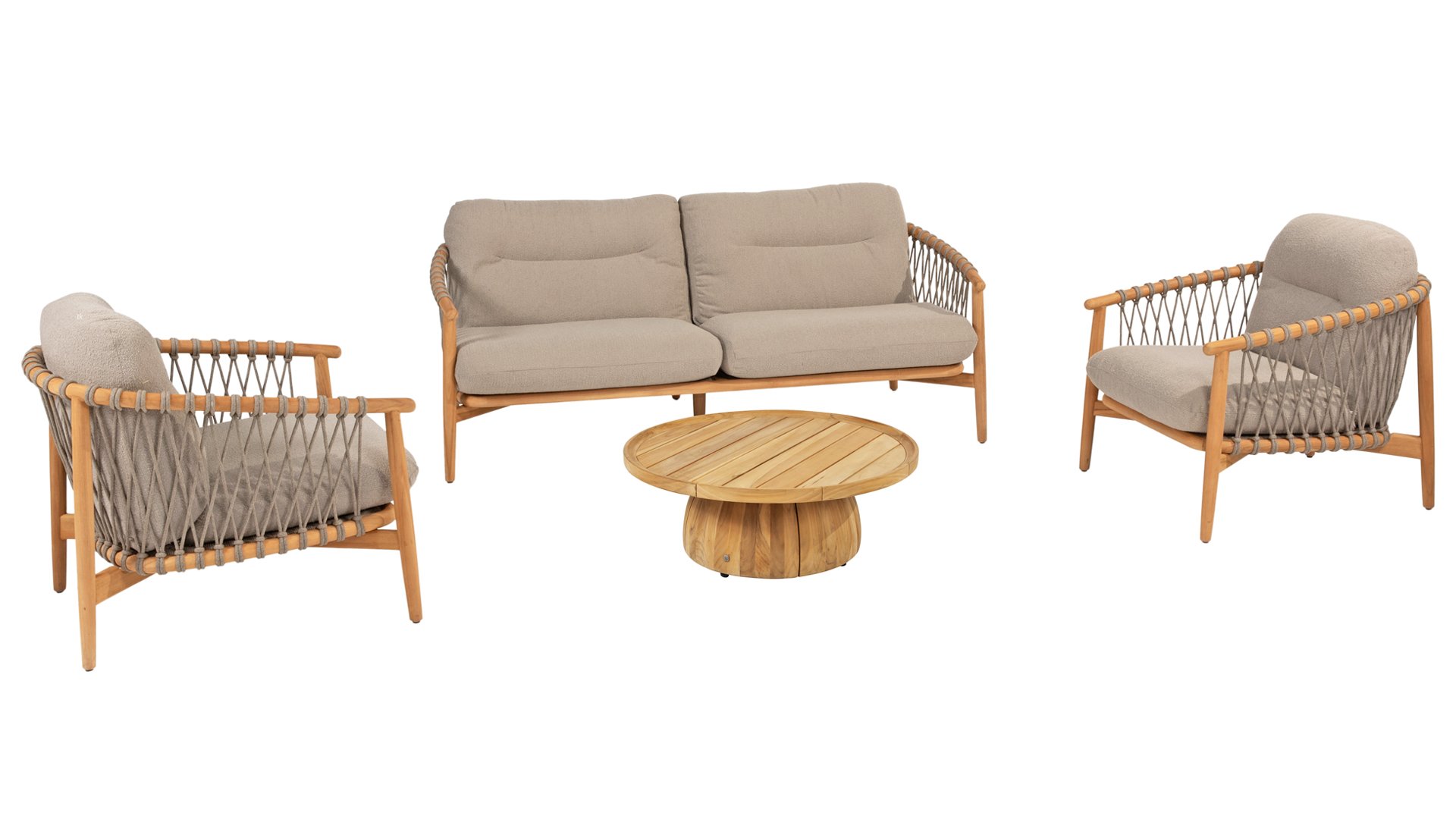 Ontdek de perfecte combinatie van stijl en comfort met de Nora lounge van 4 Seasons Outdoor. Dit loungeset is een prachtig voorbeeld van design tot in detail, waarbij alle passie is verwerkt in de Nora lounge serie. Het teakhouten frame met elegante rondingen wordt geaccentueerd door opvallende Rope patronen, wat deze stoel een echte eyecatcher maakt in je buitenruimte.