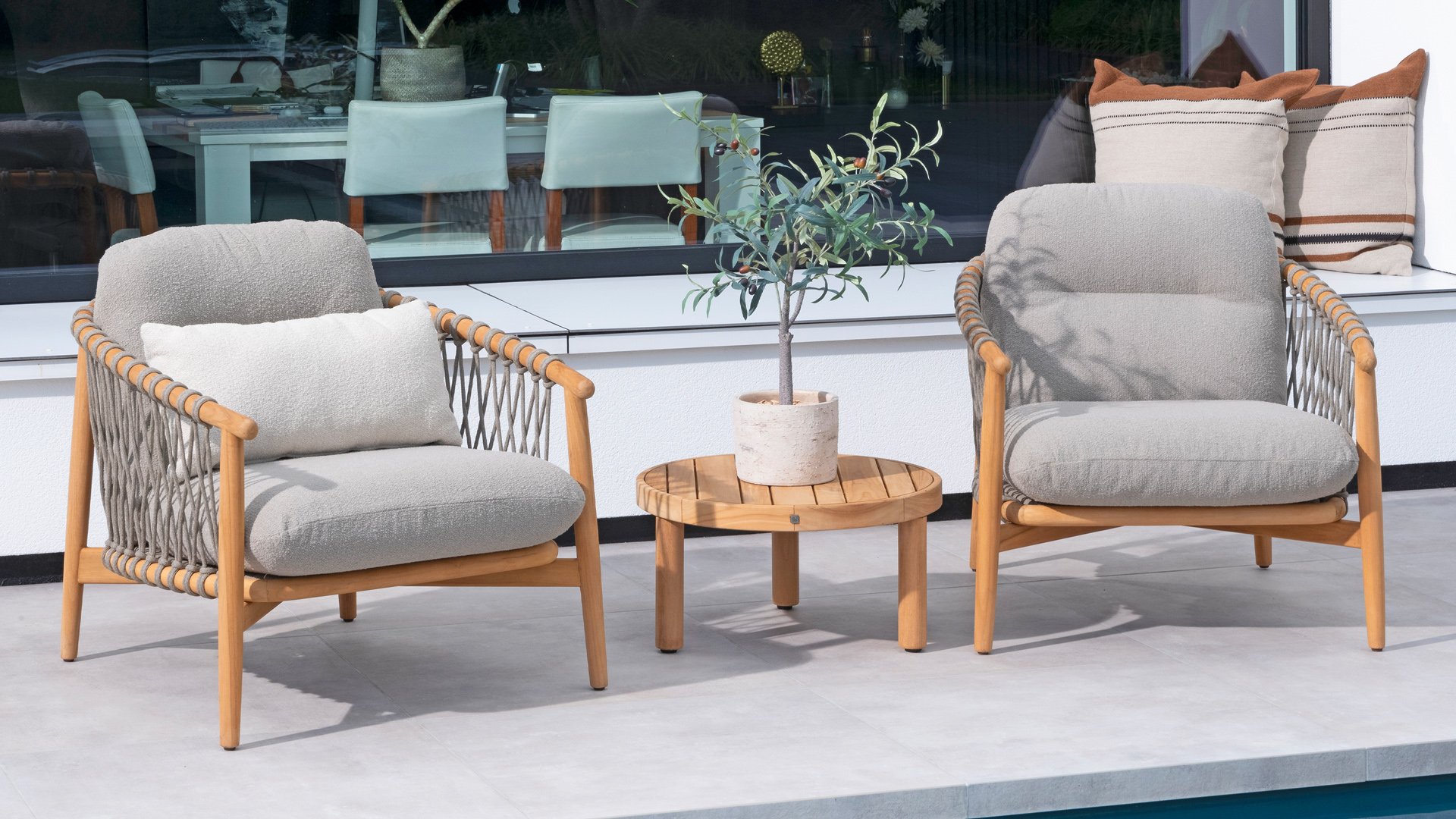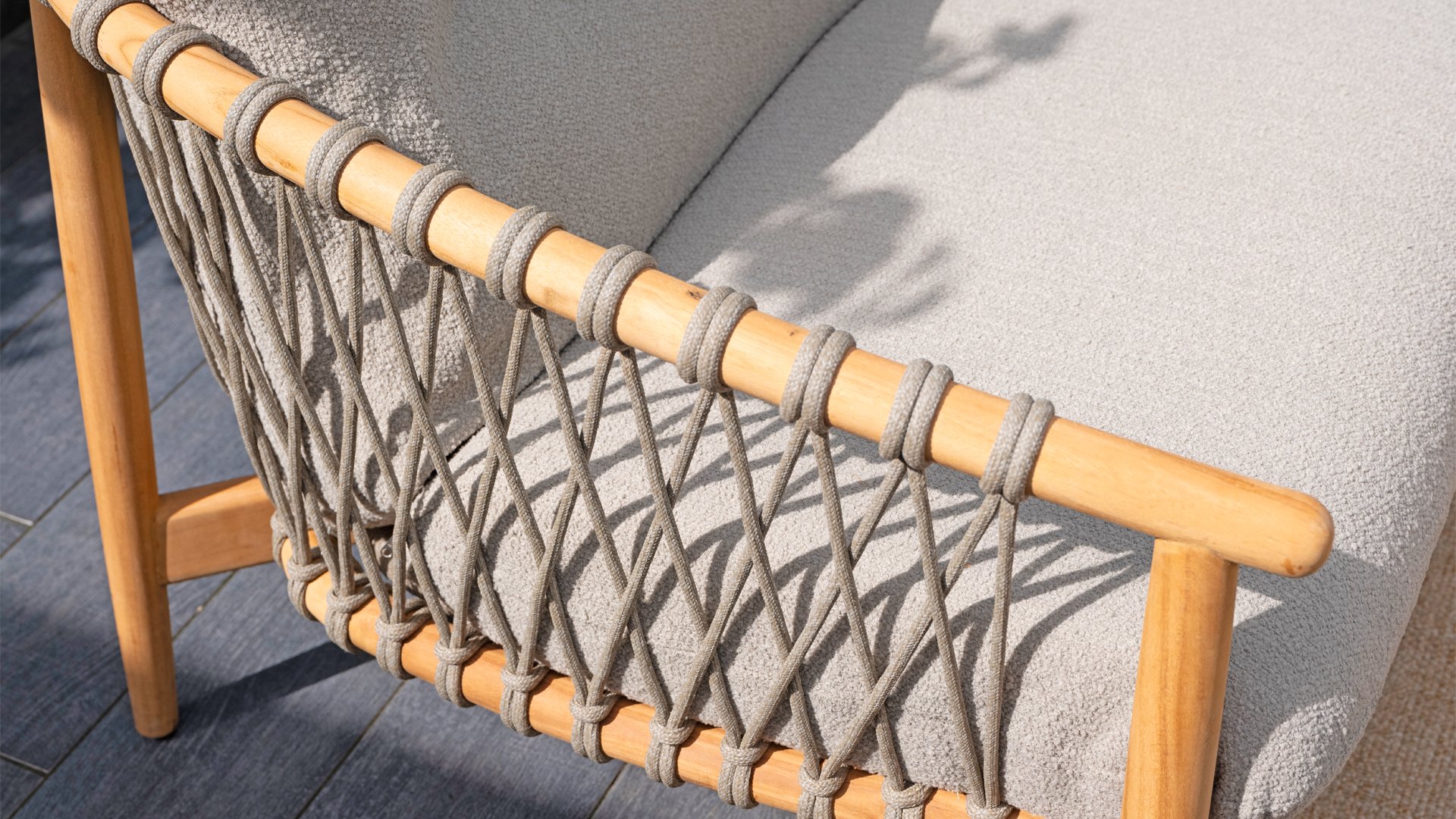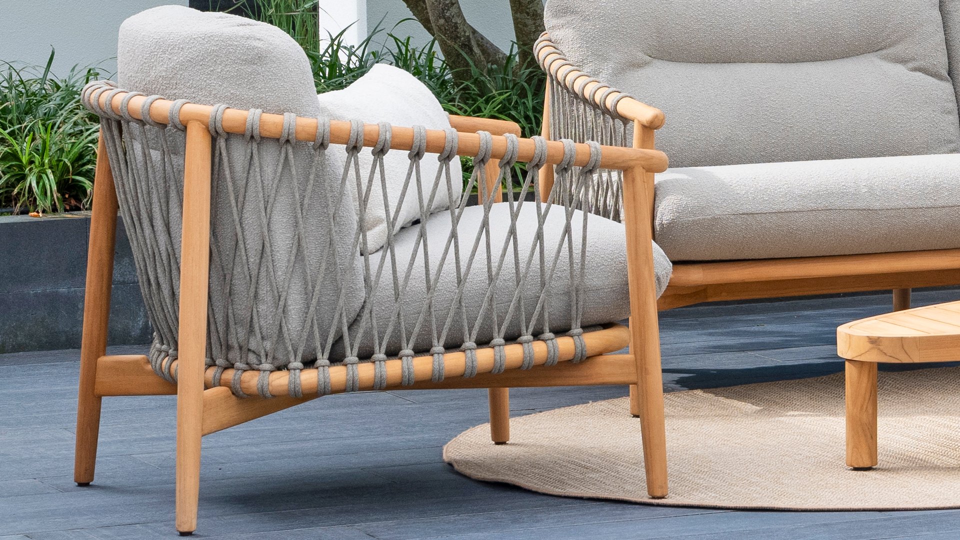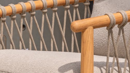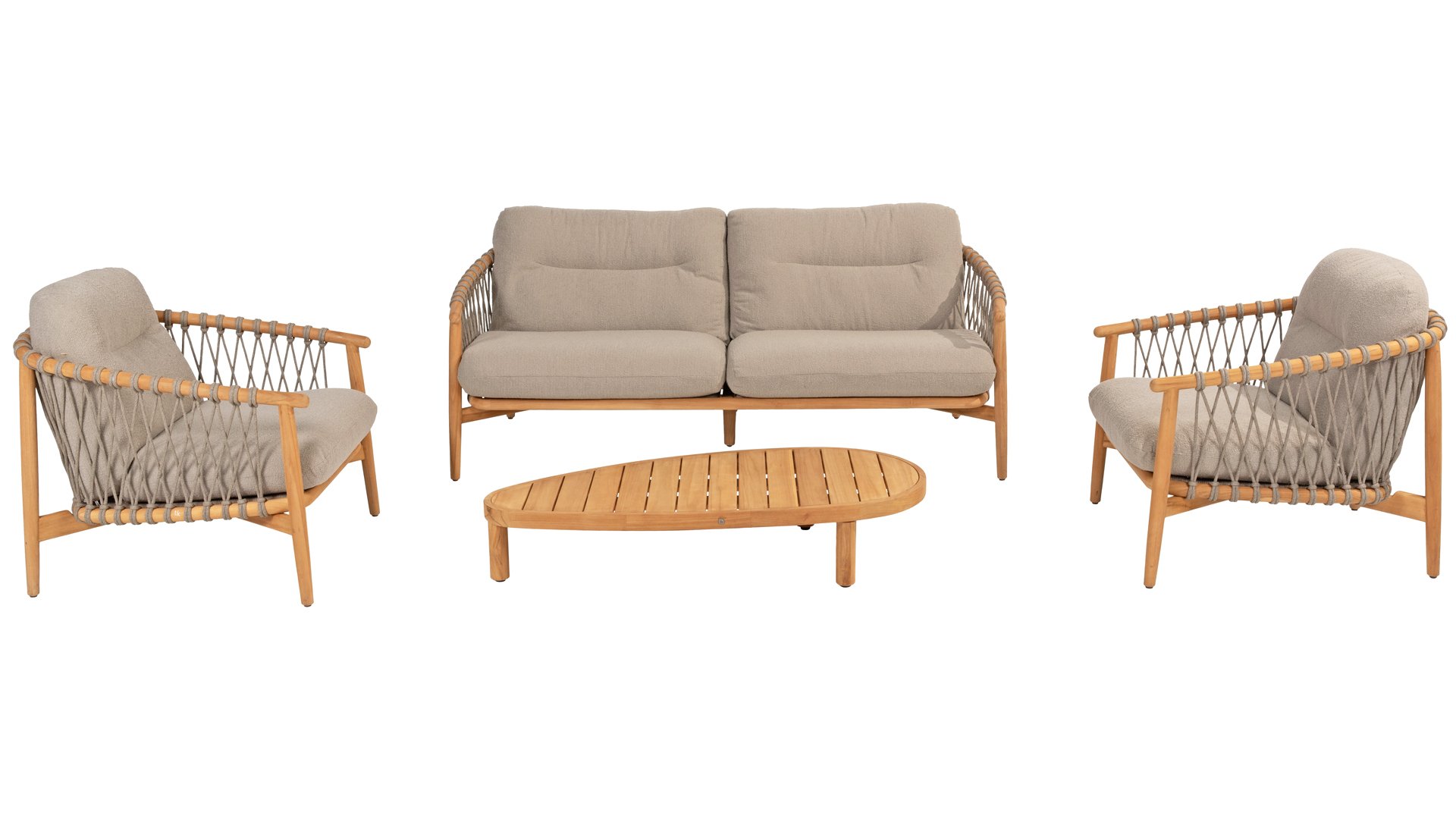 Ontdek de perfecte combinatie van stijl en comfort met de Nora lounge van 4 Seasons Outdoor. Dit loungeset is een prachtig voorbeeld van design tot in detail, waarbij alle passie is verwerkt in de Nora lounge serie. Het teakhouten frame met elegante rondingen wordt geaccentueerd door opvallende Rope patronen, wat deze stoel een echte eyecatcher maakt in je buitenruimte.
