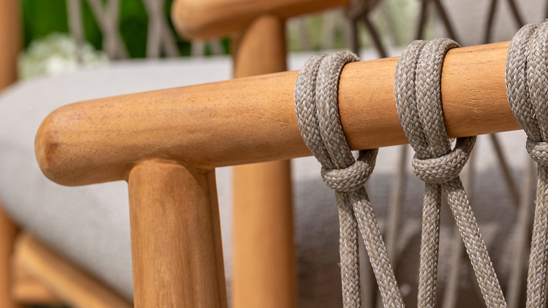- Uniek ontwerp: De combinatie van teakhout en Rope geeft de stoel een luxe uitstraling, perfect voor elke tuin of terras.