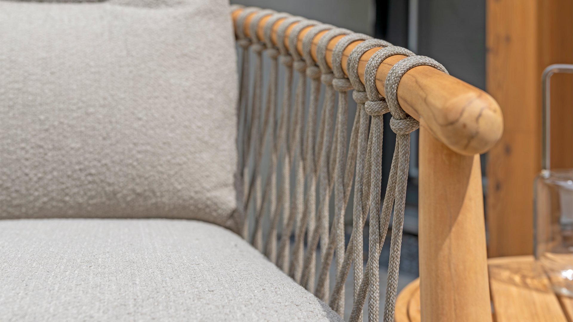 Dit prachtige materiaal is perfect voor buitengebruik, want Taste Rope is niet zo maar een gewone veter waar u uw schoenen mee strikt. Taste gebruikt zeer hoge kwaliteits Rope gemaakt van 100% SDP (Slution Dyed Polypropylene). Dit materiaal is extreem sterk en heeft een zeer klein rekbaarheids percentage. Polyproylene is op olie basis waardoor vuil en verontreiniging nauwelijks in kan dringen, net als onze kussens. Taste biedt exclusieve designs, waarbij hand geweven Rope patronen en technieken worden gebruikt.