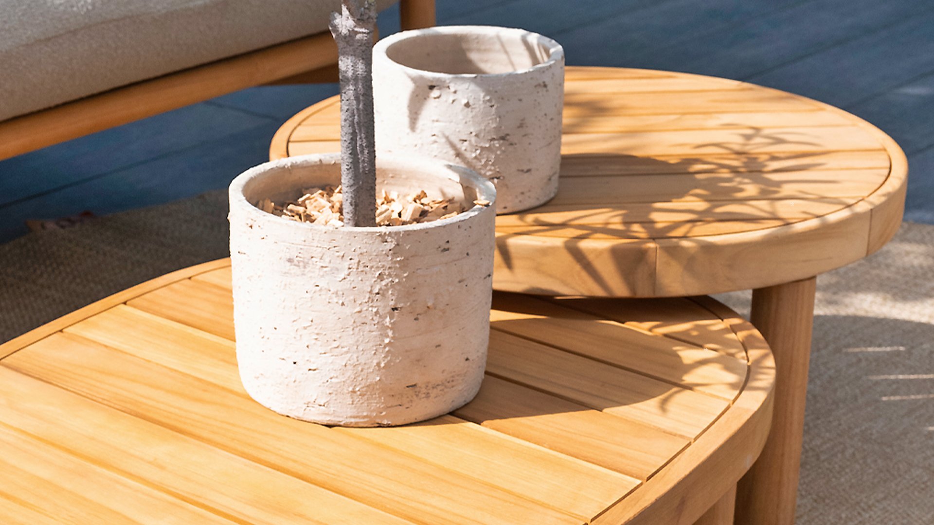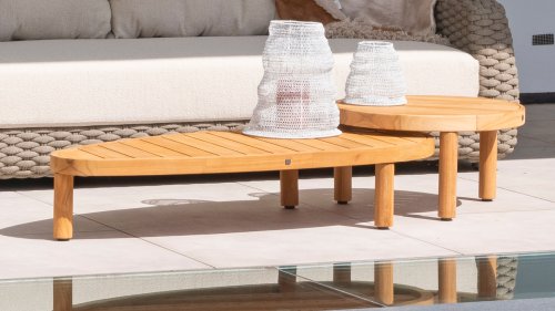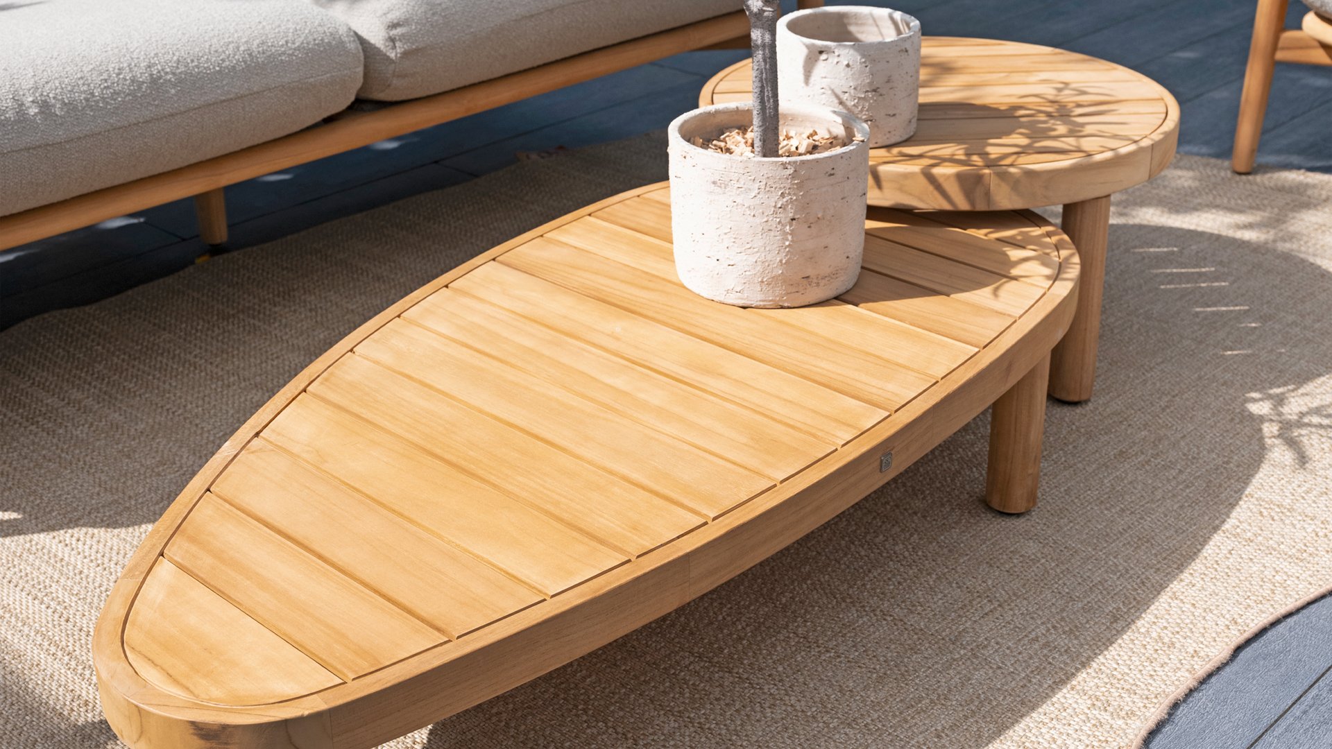 De 4 Seasons Outdoor Finn salontafel serie van teakhout voegt een vleugje klasse en functionaliteit toe aan je buitenruimte. Deze salontafels zijn toe te voegen aan een groot deel van onze loungesets. Teak hout laat zich namelijk perfect combineren met vele materialen en kleuren. Maak een set van deze 4SO Finn salontafel, kies voor een combinatie van de grote en/of kleine ronde variant of de rechthoek zodat u een unieke aanvulling hebt bij uw loungeset.