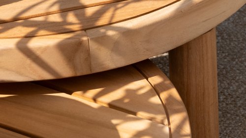 Teakhout is een natuurproduct en bijzonder geschikt voor buitengebruik. Het is bestand tegen ongedierte en schimmels en kan tegen zon, regen en sneeuw. Na verloop van tijd ontwikkelt het teakhout een zilvergrijze patina. Teakhout is een robuust materiaal en vergt weinig onderhoud. Als u de voorkeur geeft aan de originele kleur van het teakhout, kunt u eenvoudig voorkomen dat het hout vergrijst door regelmatig ons verzorgingsproduct te gebruiken. Teakhout kunt u ook reinigen met groene zeep. We geven garantie op alle productie en constructiefouten. De werking van teakhout is hier niet bij inbegrepen. Wanneer je kiest voor teakhout, verwachten we dat je deze eigenschappen waardeert. Haarscheurtjes die kunnen ontstaan, noesten in het teak en na verloop ruwe oppervlakken of onregelmatige verkleuringen zijn geen onderdeel van onze garantie. Deze eigenschappen geven het teakhout een eigen karakter en uitstraling zijn onderdeel van de natuurlijke eigenschappen. Wees voorzichtig met een bloempot of vaas op je teak tuintafel, hierdoor ontstaan er hardnekkige kringen of kleurverschillen. Imperfecties komen vaak voor, deze oneffenheden zijn kenmerkend voor dit product. Deze onregelmatigheden kunnen nooit aanleiding geven tot een claim, garantie of klacht. Dit is een teken van originaliteit!