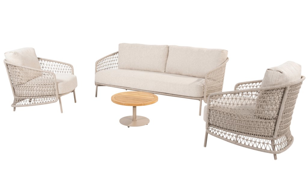 Een waar meesterwerk componeren. Er is creativiteit nodig om iets compleet nieuws te brengen. En dat is precies wat 4 Seasons Outdoor heeft gedaan: de latte-kleur van 4SO Puccini speelt de solo in zowel frame, kussens als in het verrassende rope patroon.