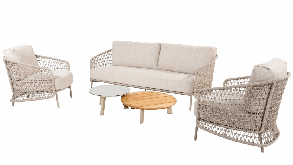 Een waar meesterwerk componeren. Er is creativiteit nodig om iets compleet nieuws te brengen. En dat is precies wat 4 Seasons Outdoor heeft gedaan: de latte-kleur van 4SO Puccini speelt de solo in zowel frame, kussens als in het verrassende rope patroon.
