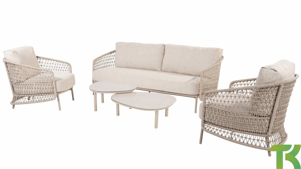 Een waar meesterwerk componeren. Er is creativiteit nodig om iets compleet nieuws te brengen. En dat is precies wat 4 Seasons Outdoor heeft gedaan: de latte-kleur van 4SO Puccini speelt de solo in zowel frame, kussens als in het verrassende rope patroon.