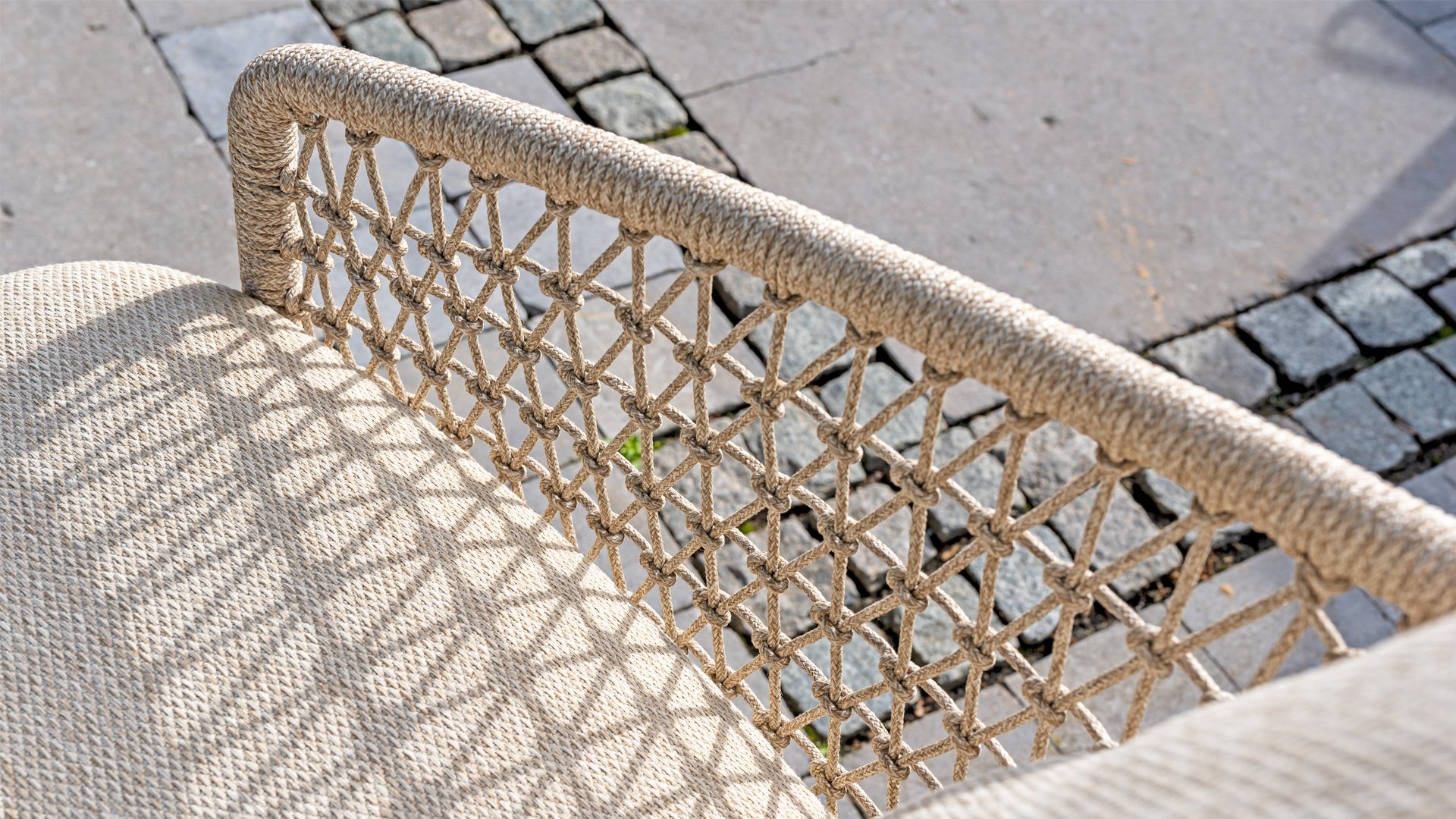 Een touw lijkt wat minder sterk dan bijvoorbeeld een wicker draad. Toch zijn de grondstoffen voor deze materialen bijna gelijk. De rekbaarheid is minimaal, 4 Seasons Outdoor tuinmeubelen met Rope zijn geschikt voor personen met een lichaamsgewicht tot 110 KG. Het is dus een uitzonderlijk sterk materiaal, wel is het belangrijk om voorzichtig te zijn met scherpe voorwerpen. Ons 4SO Rope is bestand tegen de weersinvloeden maar een scherp voorwerp kan je tuinmeubel flink beschadigen. Wij geven maar liefst 5 jaar garantie op fabricage en constructiefouten. Mocht er onverhoopt schade ontstaan dan is het in de meeste gevallen gewoon te repareren. Neem in dat geval altijd contact op met je verkooppunt. 4Seasons biedt exclusieve designs, waarbij hand geweven Rope patronen en technieken worden gebruikt.
