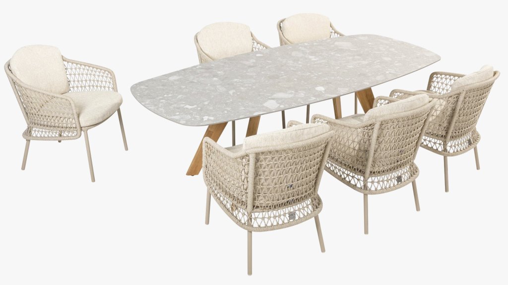 1 x 4Seasons Outdoor Montana Tafel 240x103cm Teak Ceramic Terrazzo