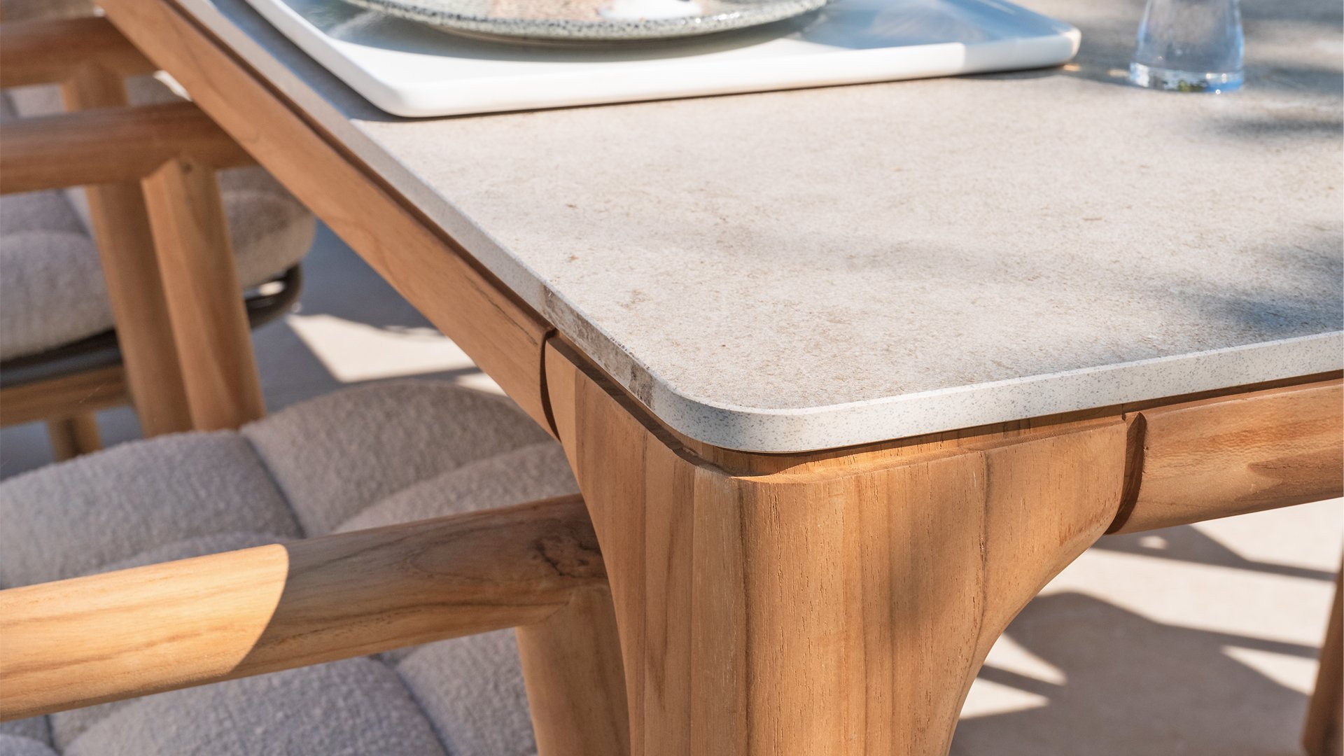 Dit materiaal wordt al decennia lang gebruikt als vloer, afwerking in badkamers en luxe (buiten)zwembaden. Niet voor niets staat het duurzame materiaal bekend om zijn extreme hardheid. De prachtige uitstraling van het materiaal maakt keramiek zeer onderscheidend en gewild. Keramiek is een mengsel van natuurlijke materialen dat je kunt vergelijken met een soort klei. Onder zeer hoge temperatuur wordt dit gebakken waardoor er een licht, maar zeer sterk materiaal ontstaat dat extreem kras bestendig is en daarbij ook goed tegen extreme temperaturen kan. Zoals gezegd heeft keramiek een aantal unieke eigenschappen die vooral voor buitengebruik erg veel voordelen opleveren. Hitte en kou zijn geen probleem voor keramiek, tuintafels kunnen dus het hele jaar door gewoon buiten staan.