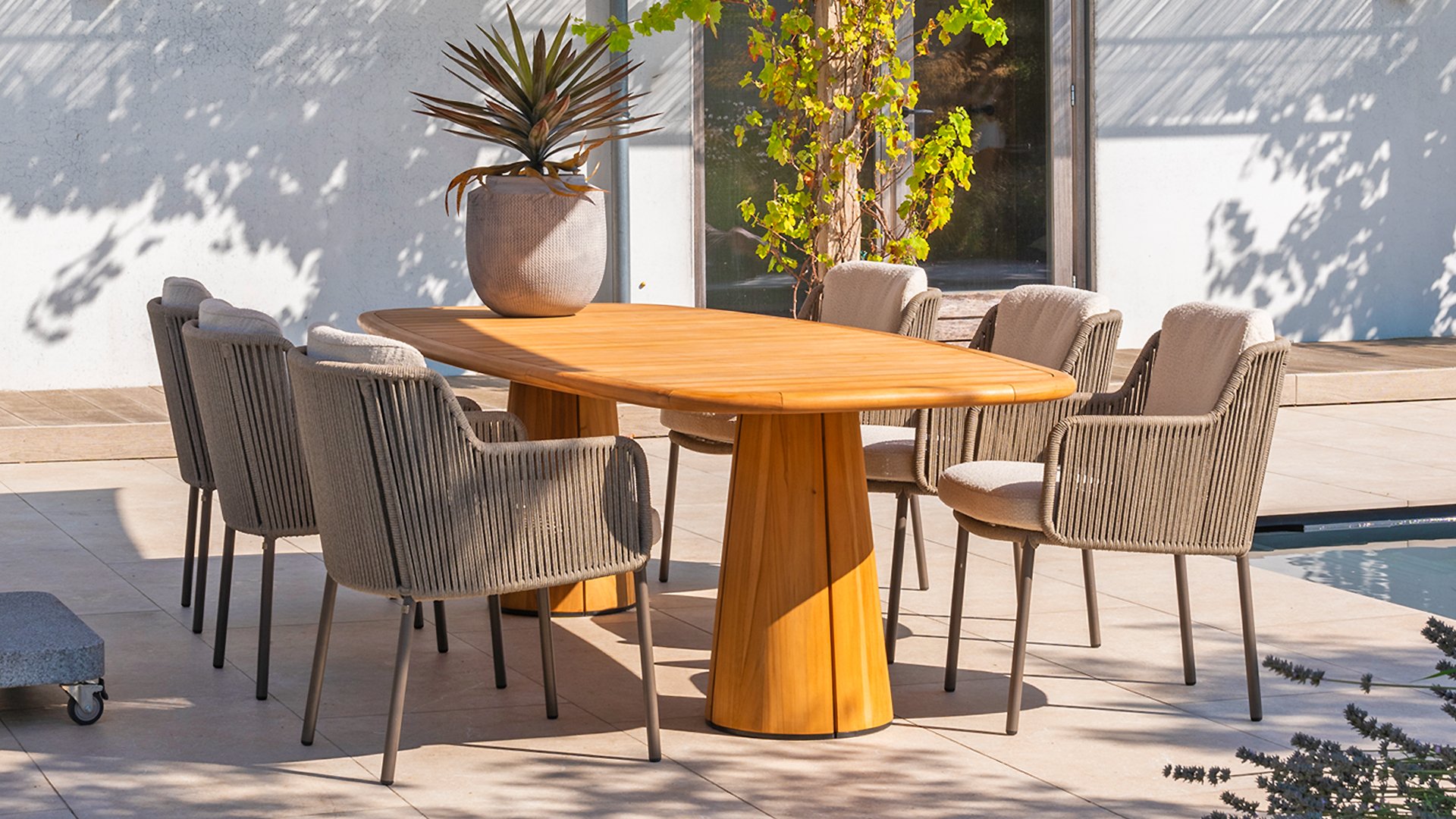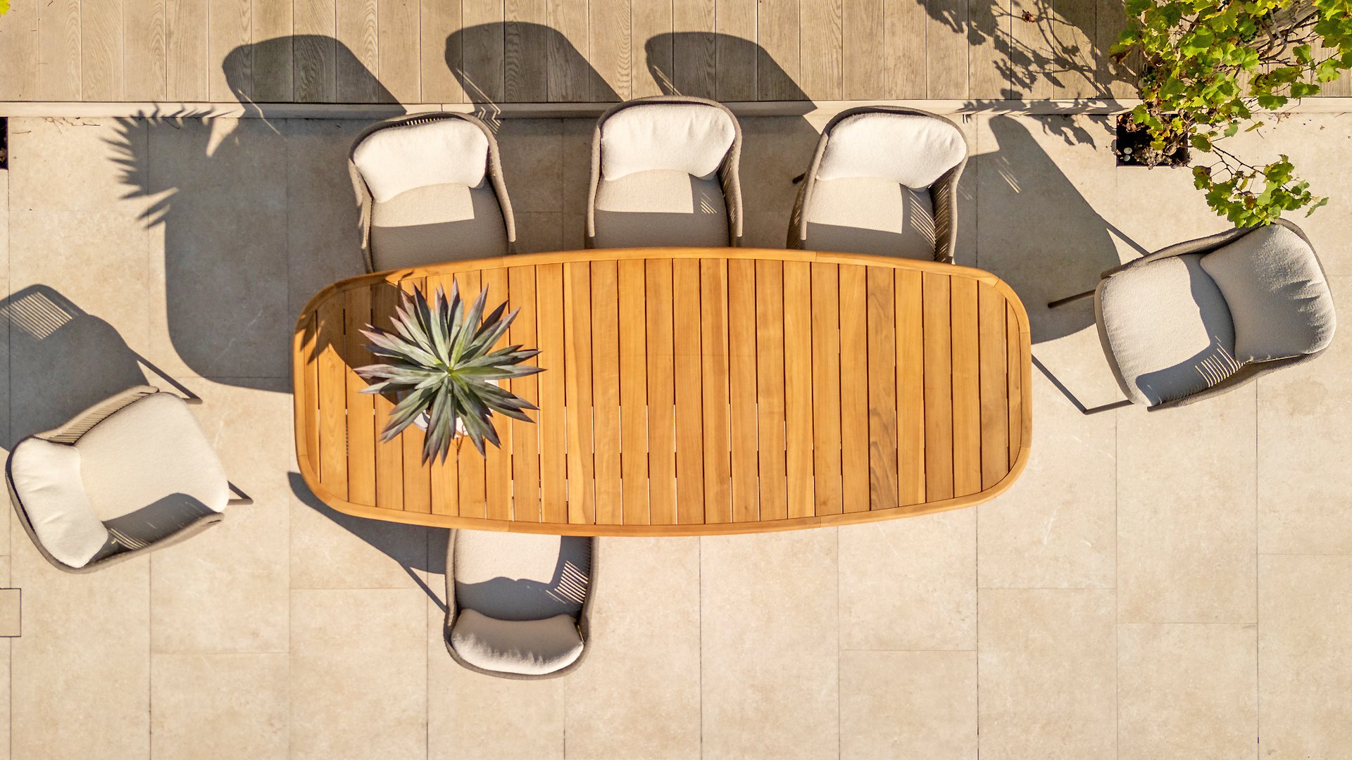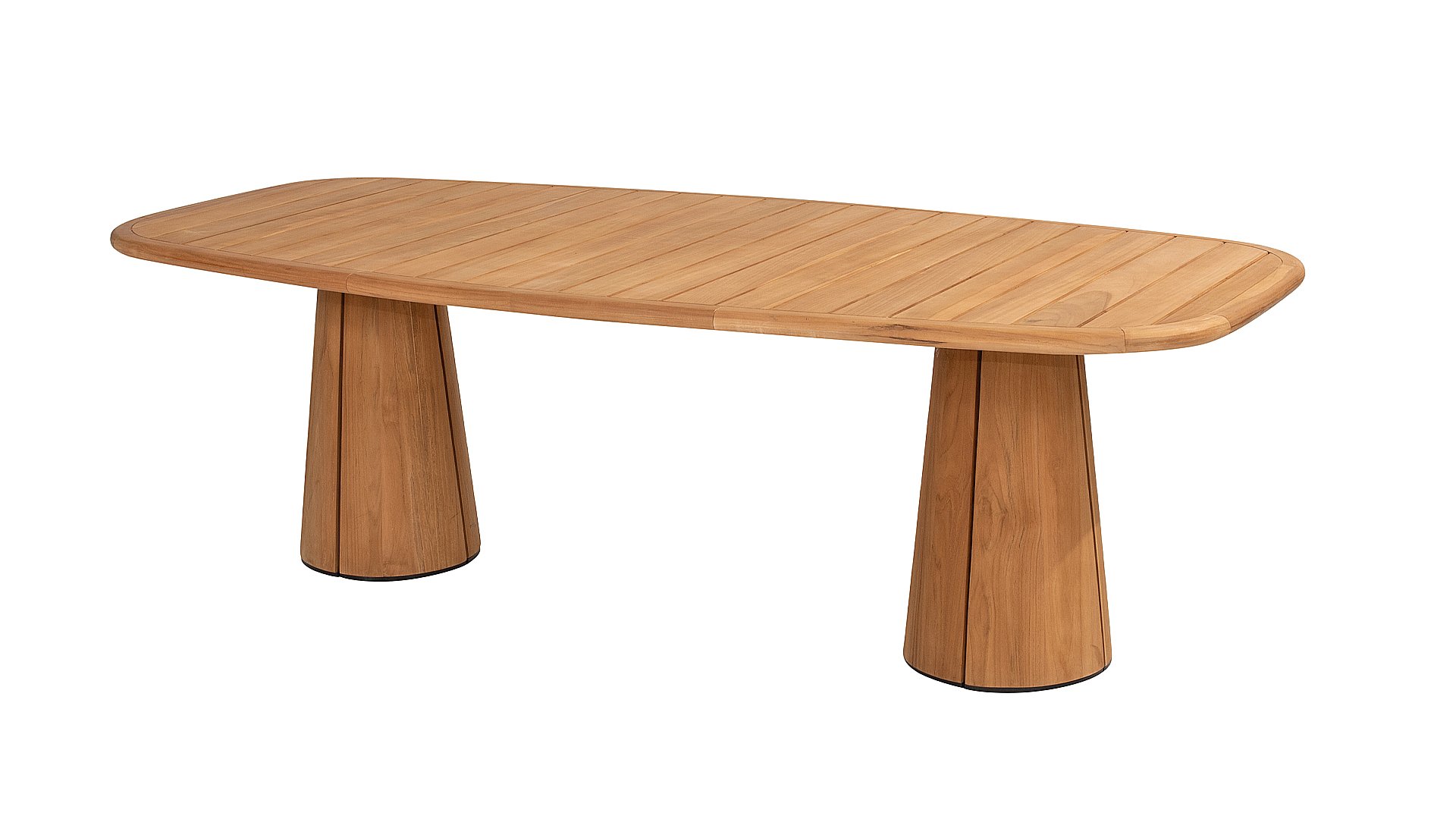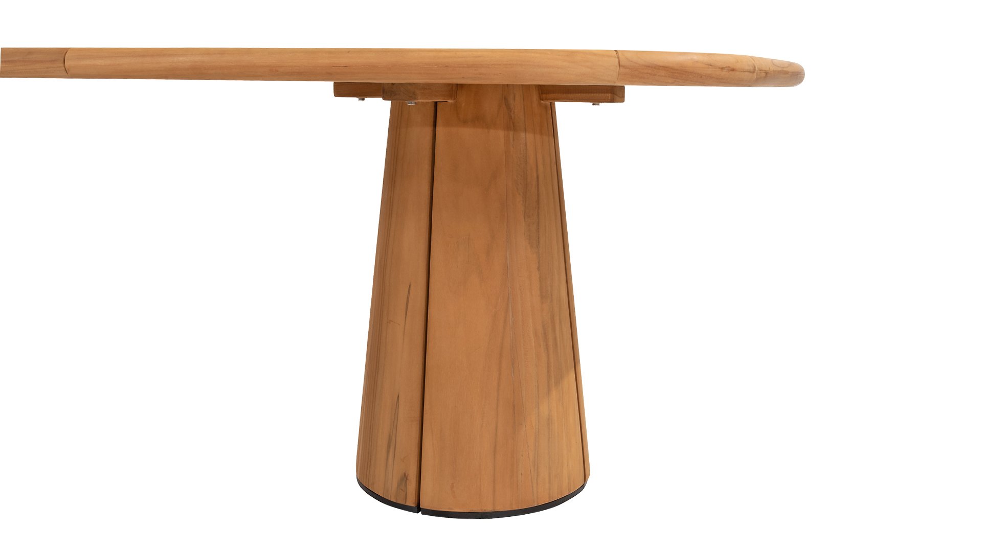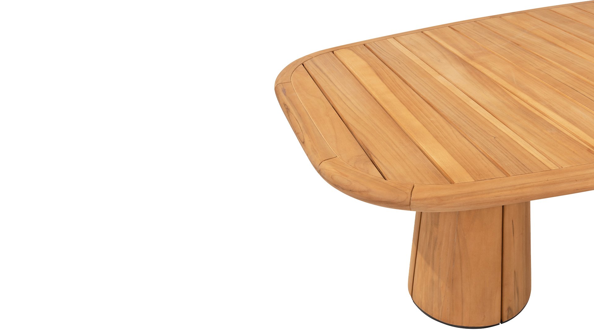 De Capri is een prachtige toevoeging aan elk interieur, volledig vervaardigd uit hoogwaardig teakhout. Het blad heeft een valse ovale vorm, wat een speelse en toch elegante uitstraling geeft. Deze unieke vorm biedt meer ruimte voor diners en gesprekken, terwijl het een modern en organisch gevoel toevoegt aan de ruimte.