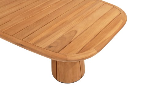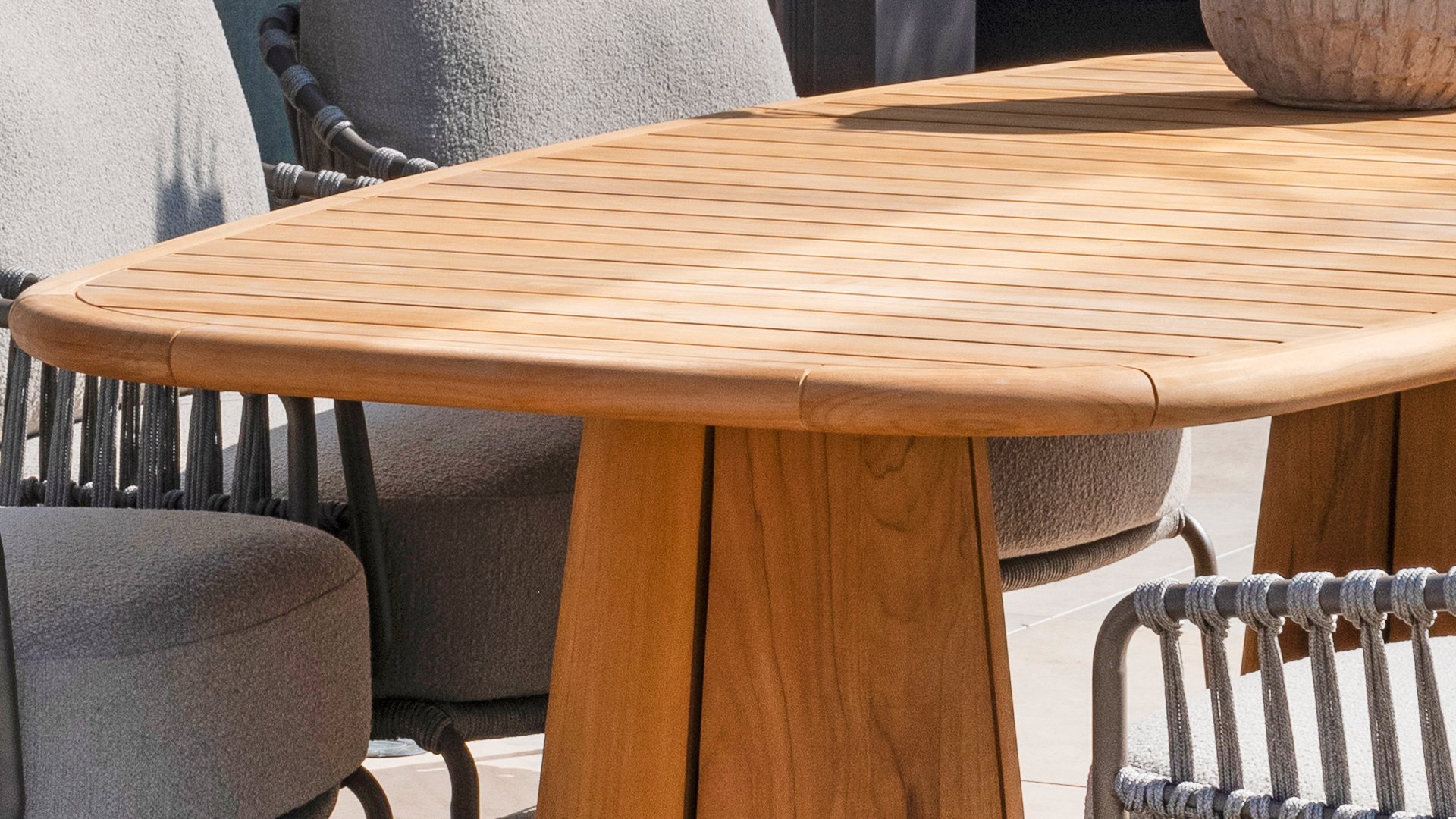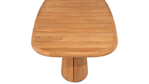 De ronde poten zorgen voor stabiliteit en dragen bij aan het strakke design van de tafel. De natuurlijke tinten en de prachtige nerf van het teakhout zorgen ervoor dat elke tafel uniek is, met een warme, uitnodigende uitstraling. Deze tafel is perfect voor sociale bijeenkomsten en dagelijkse maaltijden. Een echte blikvanger die functionaliteit en esthetiek combineert. Ook verkrijgbaar in de volgende maten: