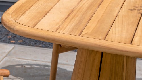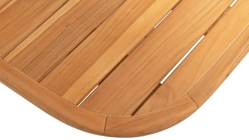 Teakhout is een natuurproduct en bijzonder geschikt voor buitengebruik. Het is bestand tegen ongedierte en schimmels en kan tegen zon, regen en sneeuw. Na verloop van tijd ontwikkelt het teakhout een zilvergrijze patina. Teakhout is een robuust materiaal en vergt weinig onderhoud. Als u de voorkeur geeft aan de originele kleur van het teakhout, kunt u eenvoudig voorkomen dat het hout vergrijst door regelmatig ons verzorgingsproduct te gebruiken. Teakhout kunt u ook reinigen met groene zeep. We geven garantie op alle productie en constructiefouten. De werking van teakhout is hier niet bij inbegrepen. Wanneer je kiest voor teakhout, verwachten we dat je deze eigenschappen waardeert. Haarscheurtjes die kunnen ontstaan, noesten in het teak en na verloop ruwe oppervlakken of onregelmatige verkleuringen zijn geen onderdeel van onze garantie. Deze eigenschappen geven het teakhout een eigen karakter en uitstraling zijn onderdeel van de natuurlijke eigenschappen. Wees voorzichtig met een bloempot of vaas op je teak tuintafel, hierdoor ontstaan er hardnekkige kringen of kleurverschillen. Imperfecties komen vaak voor, deze oneffenheden zijn kenmerkend voor dit product. Deze onregelmatigheden kunnen nooit aanleiding geven tot een claim, garantie of klacht. Dit is een teken van originaliteit!