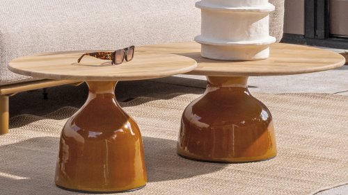 De 4 Seasons Outdoor June salontafelserie is een ode aan verfijnde eenvoud en natuurlijke luxe. Met een rond teakhouten blad en een opvallend keramisch high-gloss onderstel brengt June warmte en een moderne touch samen in één krachtig ontwerp. Een frame van keramiek met een high gloss finish straalt luxe en verfijning uit. De glanzende toplaag geeft het oppervlak een diepe, spiegelende glans die het licht prachtig weerkaatst. Keramiek is van nature hard, slijtvast en bestand tegen hitte, krassen en vocht. Dankzij deze eigenschappen is het ideaal voor buitengebruik en blijft het lang mooi met minimaal onderhoud. De high gloss afwerking versterkt de kleur en geeft het frame een moderne, elegante uitstraling. In combinatie met natuurlijke materialen zoals hout zorgt het voor een stijlvol contrast dat zowel tijdloos als eigentijds aanvoelt. Verkrijgbaar in 3 formaten en 2 kleuren; Caramel en Creme. Zo creëer je eenvoudig een dynamische loungesfeer die stijlvol én functioneel is. June Caramel: Ø80cm, Ø60cm, Ø45cm.