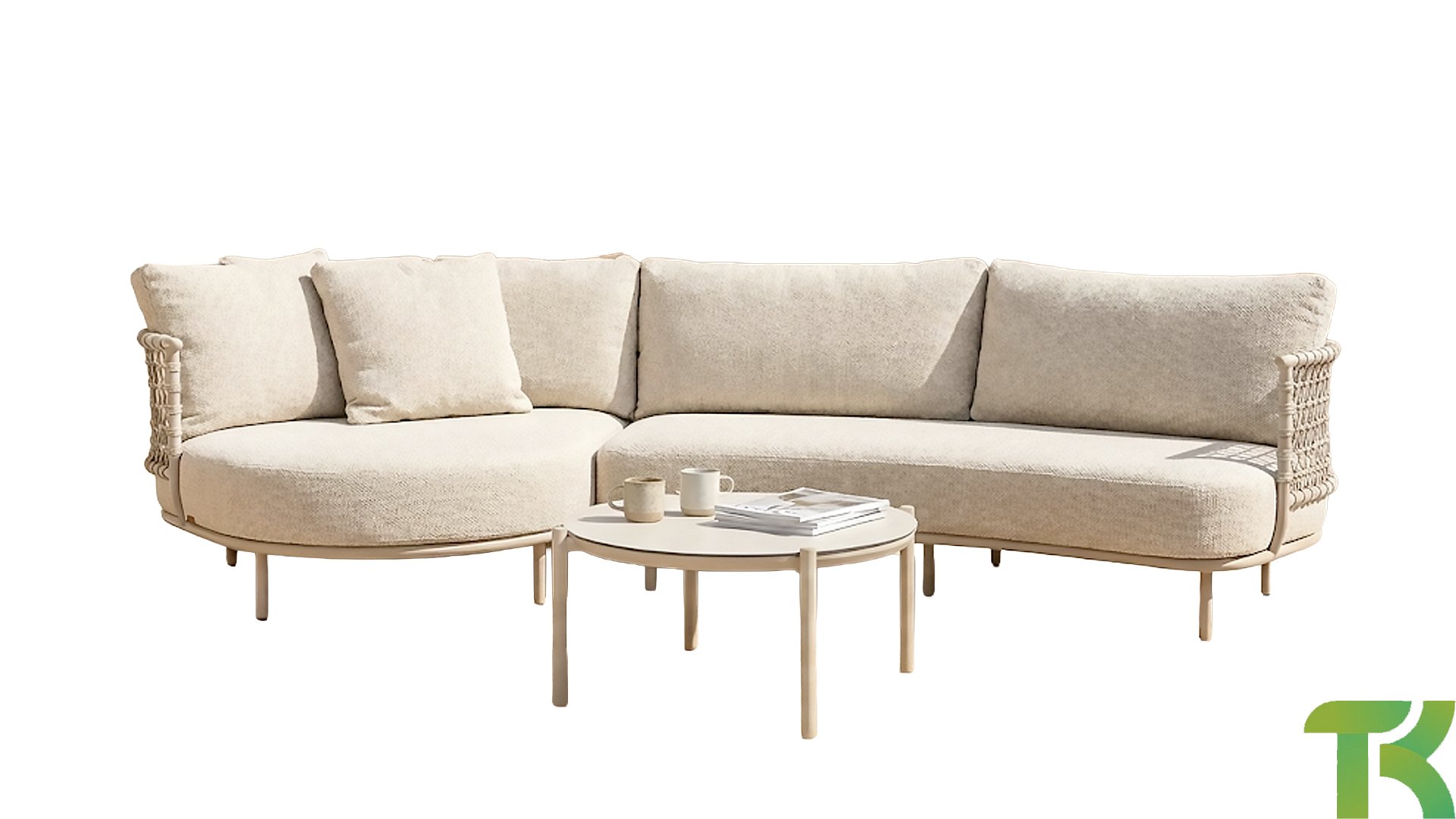 - Natuurlijke uitstraling: De latte rope bekleding geeft de bank een natuurlijke, warme en vriendelijke uitstraling, perfect voor een ontspannen buitenomgeving.