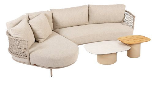 - Natuurlijke uitstraling: De latte rope bekleding geeft de bank een natuurlijke, warme en vriendelijke uitstraling, perfect voor een ontspannen buitenomgeving.
