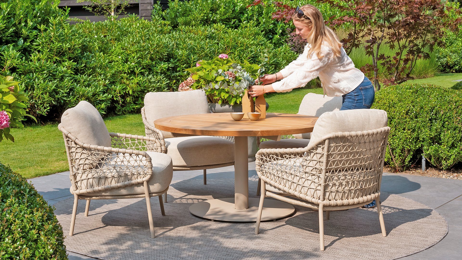 Low dining tafel wat is dat? Op het oog een normale eettafel, maar bij zoals de naam als zegt wat lager. Door een lagere zithoogte zit je wat meer ontspannen, een ideale setting om urenlang gezellig na te tafelen. Een low dining eettafel biedt het beste van twee werelden: de ruimte voor een uitgebreide barbecue en een ontspannen zit voor het loungegevoel. Verkrijgbaar in de maten Ø130cm, Ø160cm en kleuren Antraciet en Latte: