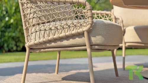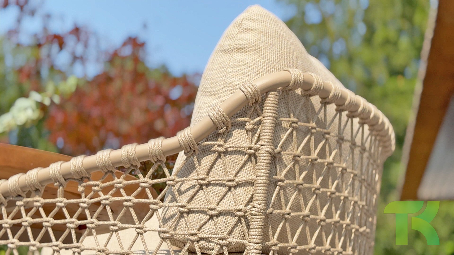 - Natuurlijke uitstraling: De latte rope bekleding geeft de stoel een natuurlijke, warme en vriendelijke uitstraling, perfect voor een ontspannen buitenomgeving.