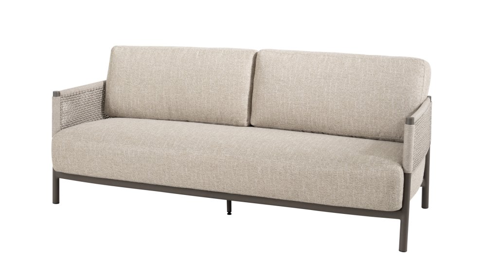 Strak design, perfecte kwaliteit. De 4 Seasons Outdoor Savanne lounge is rondom voorzien van een prachtig touwpatroon, handgemaakt door de meest ervaren wevers. Dankzij de weerbestendige materialen en kussens geniet je het hele jaar door van Savanne. Het gepoedercoate aluminium frame in de kleur Terre, gecombineerd met het lichtgrijze rope, geeft de lounge een stijlvolle uitstraling. De Savanne is voorzien van dikke, comfortabele kussens, bekleed met Olefin in de luxueuze stof ‘Hikaron Luxury’.