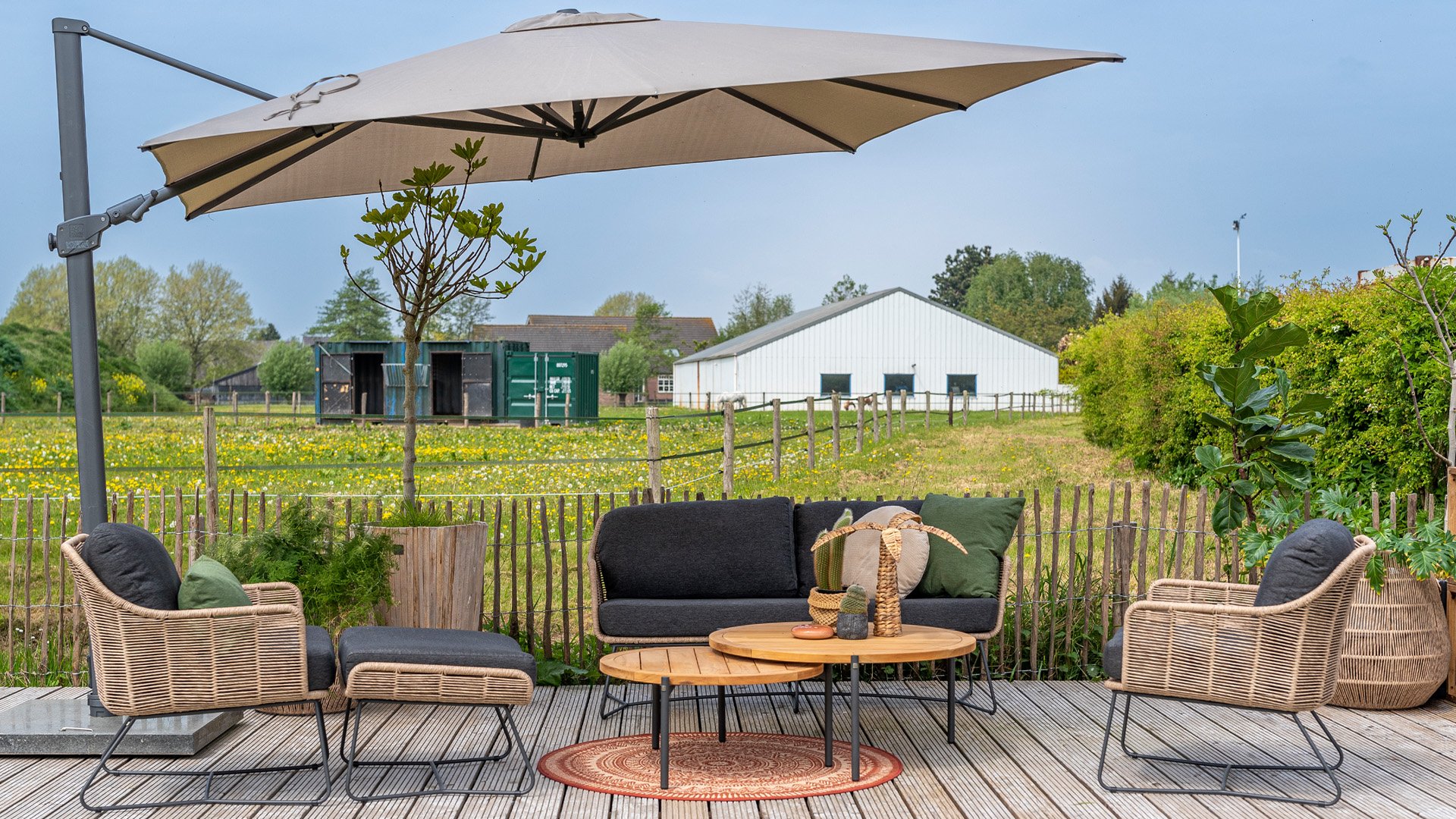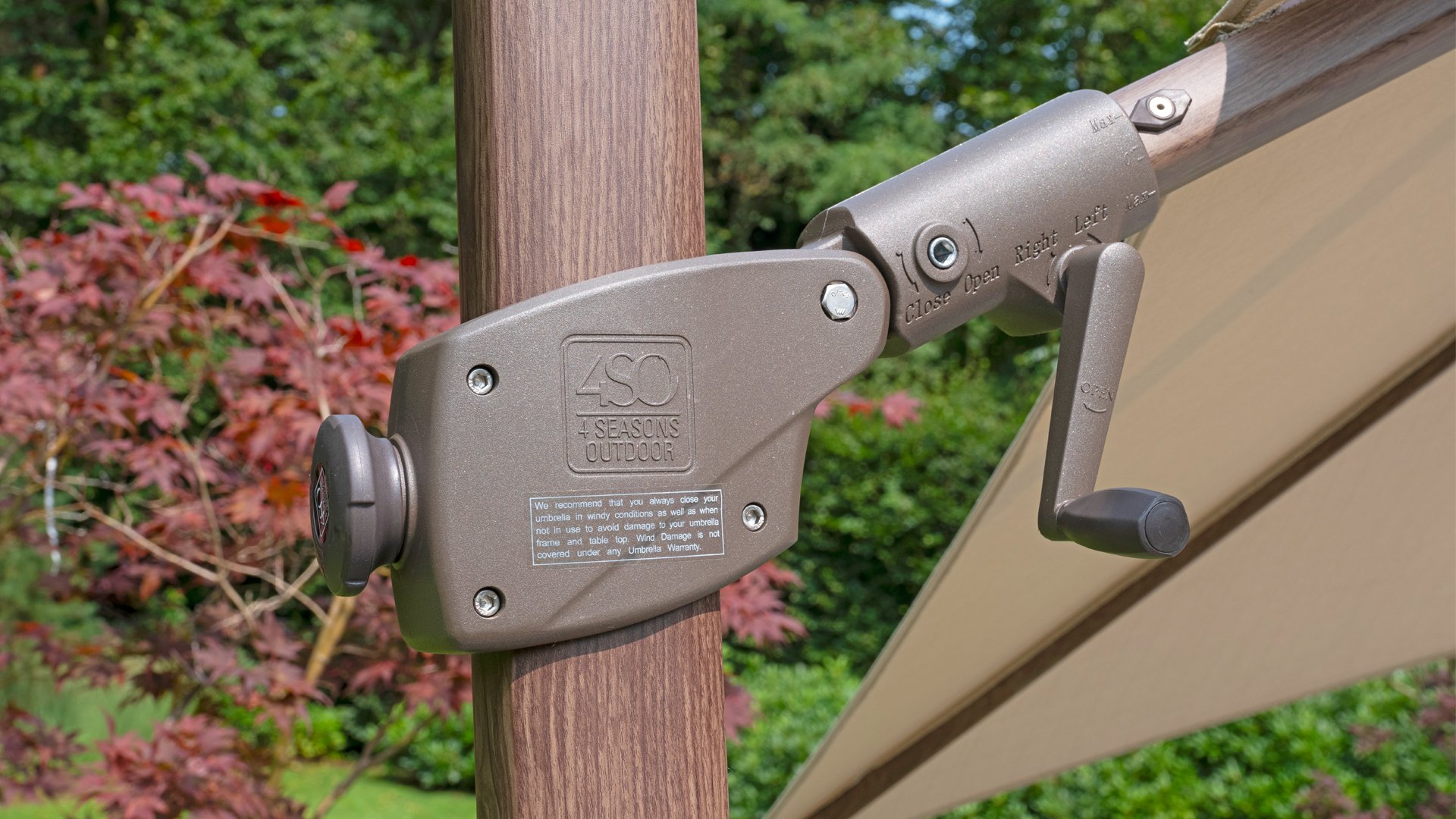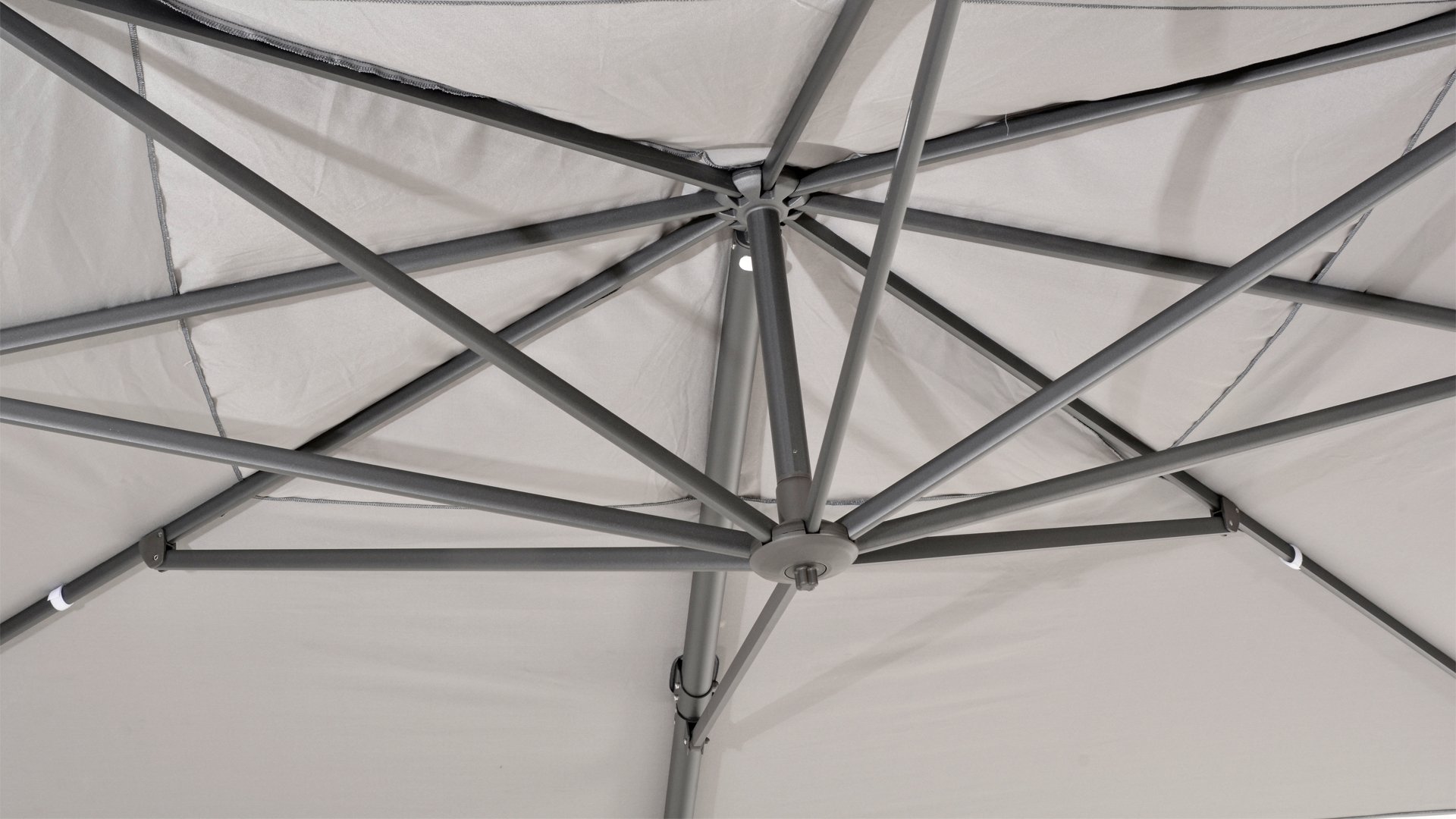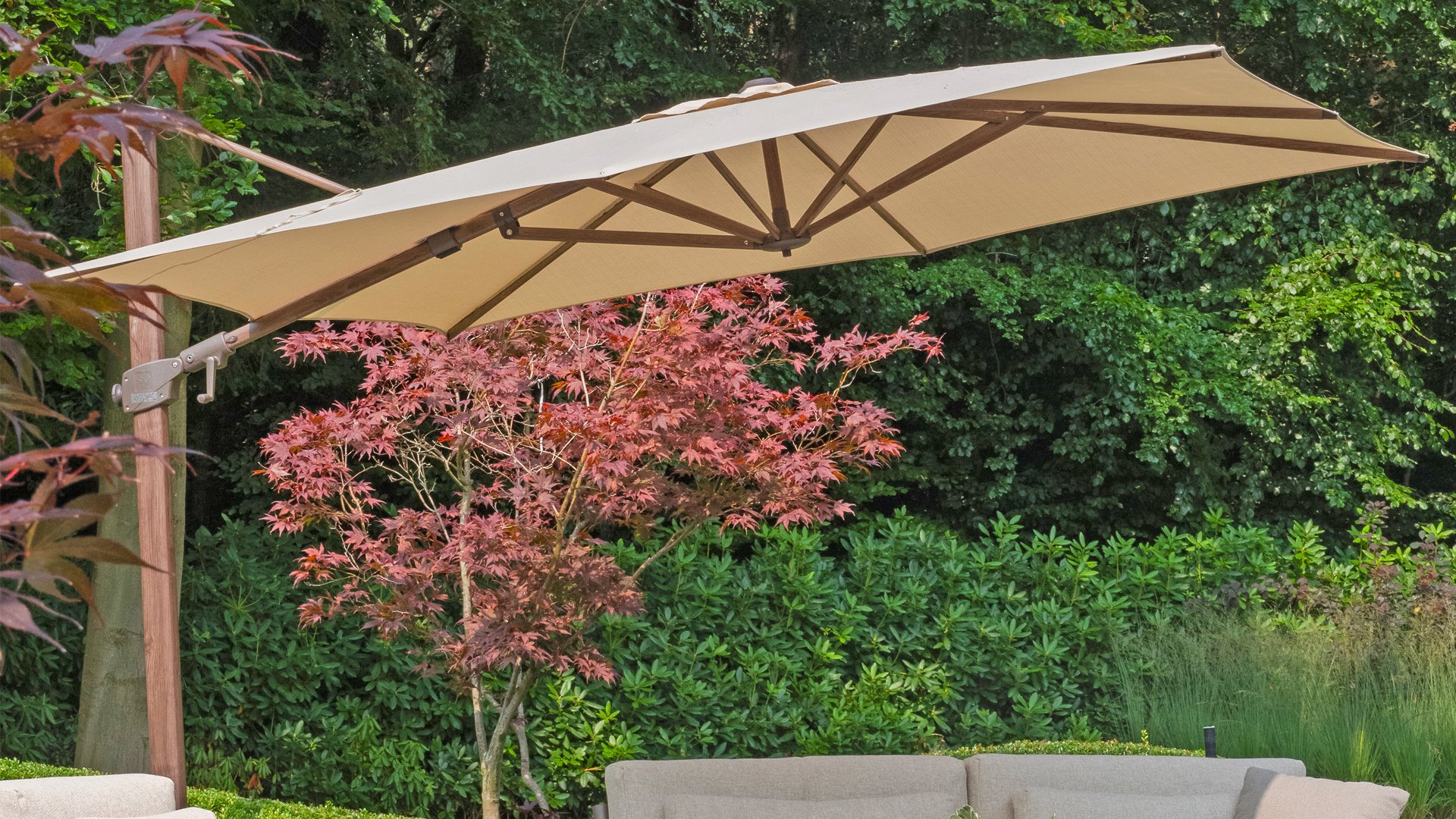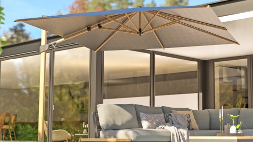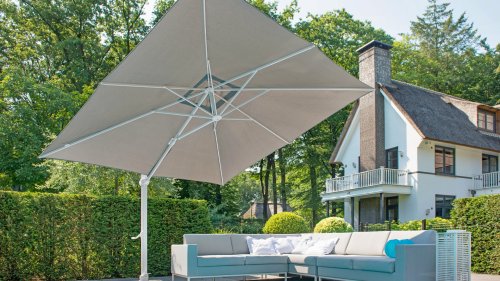 Zweefparasols van 4Seasons Outdoor: Premium kwaliteit, premium functionaliteit. Iedere hangarmparasol van 4Seasons Outdoor kan makkelijk draaien op de sokkel d.m.v. een pedaal en naar achteren kantelen om de lage zon op te vangen. Met een kanteloptie zowel van links naar rechts als van boven naar onder t.o.v. het frame, is onze veelzijdige Siesta Premium onze topklasse parasol. Het UV-bestendige (UPF waarde van 50+) Solefin en duurzame aluminium frames zijn stevig, gebruiksvriendelijk en minimalistisch ontworpen.