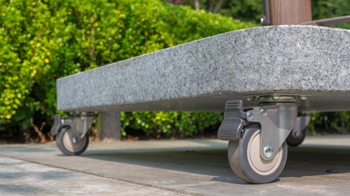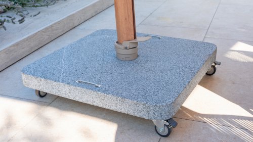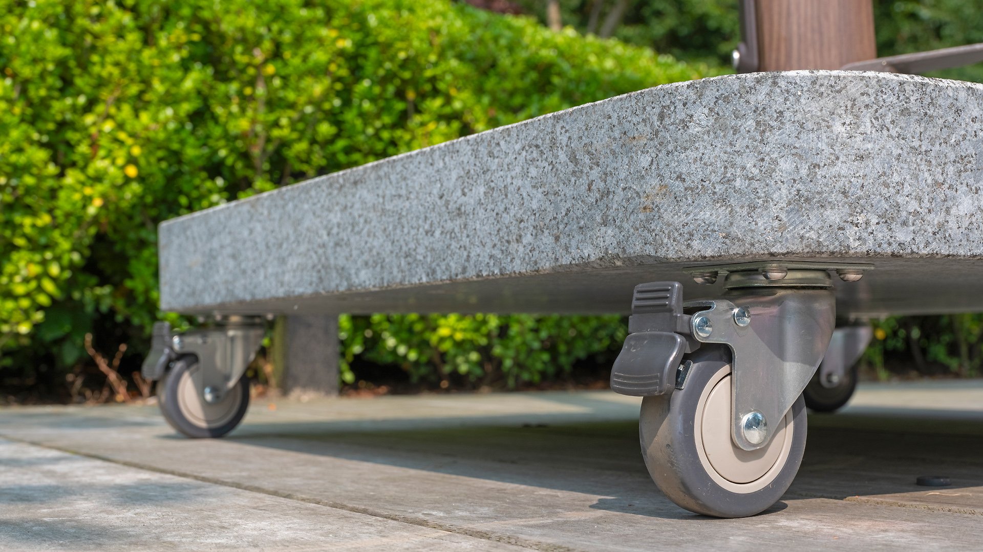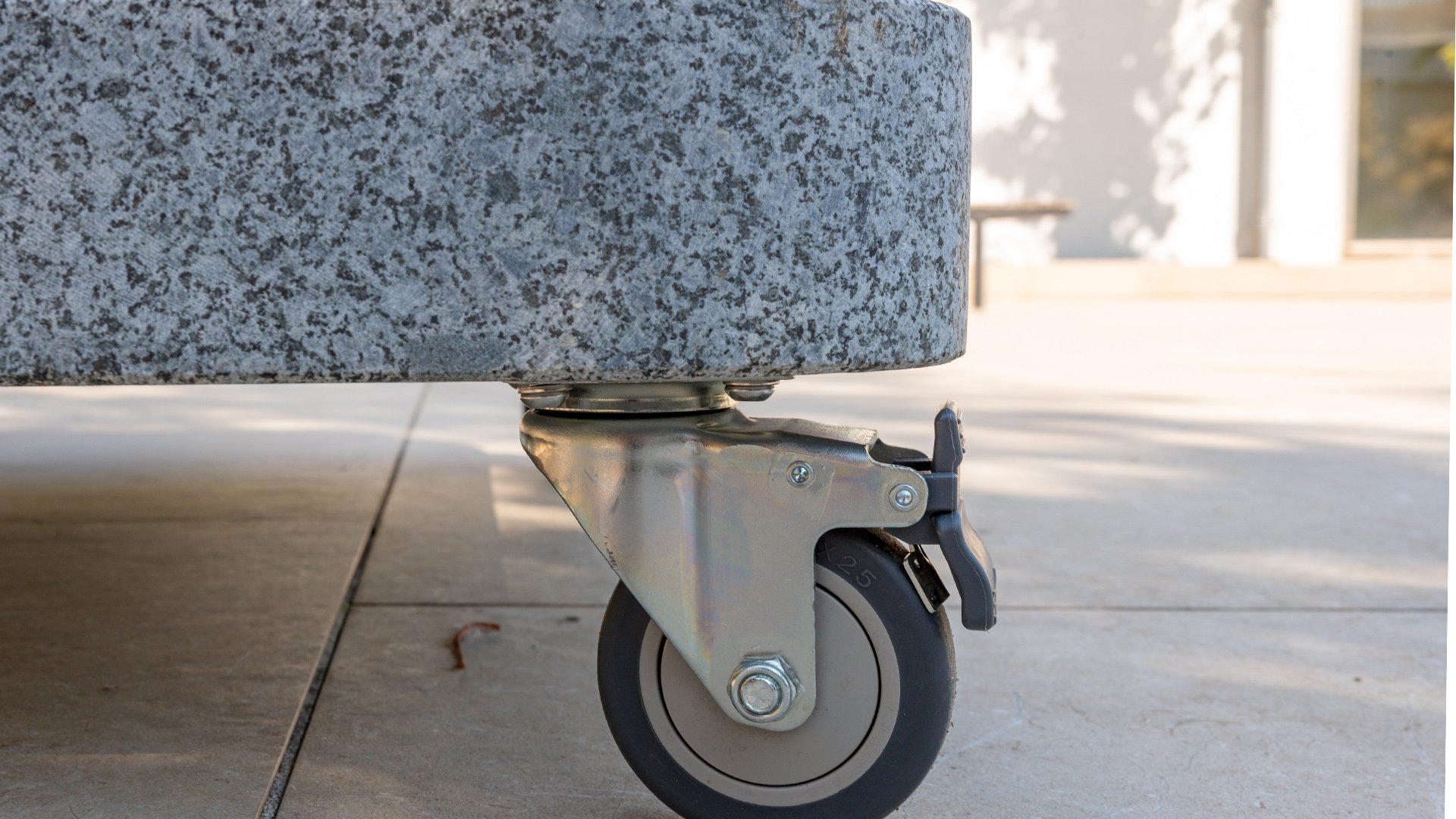 Plaats uw parasol op een van onze granieten voeten of kies voor een grondanker. De Siesta parasol heeft meerdere voet mogelijkheden. U kunt kiezen voor een grondverankering (inground base) of voor een voet van graniet. De granieten voet is leverbaar in 90; 125 en 180 kilo. De 125 kg voet geeft in meeste gevallen voldoende stabiliteit. Op plaatsen waar de wind meer dan gemiddeld zich laat voelen, is een zwaardere voet een mogelijkheid.Neemt u wielen erbij ( alleen op de 125 en 180kg ), dan is de parasol ook makkelijk verplaatsbaar op uw terras.