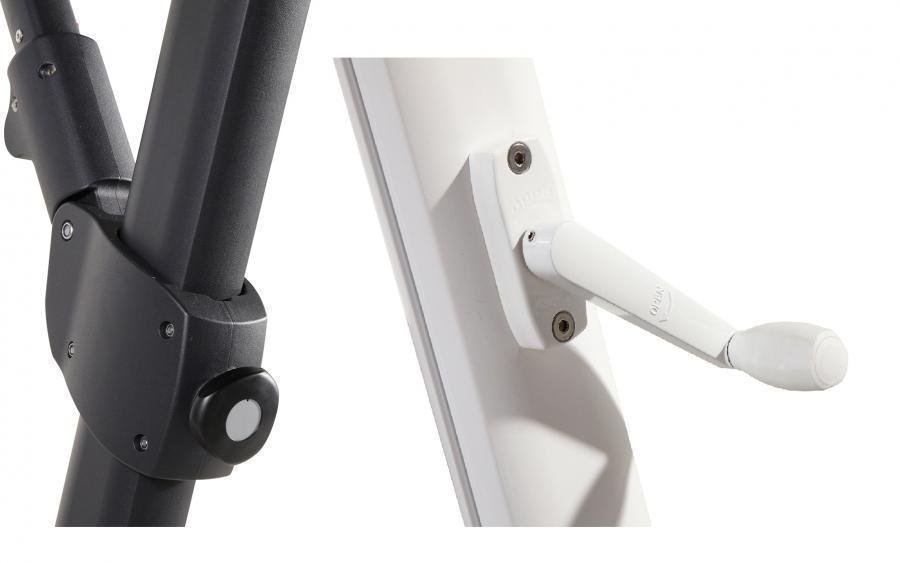 De Siesta is leverbaar als Premium en als non-Premium variant. De kwaliteit is hetzelfde, maar de Premium kan ook zijwaarts kantelen. Deze hangparasol is ook beschikbaar in de kleur Antraciet/Taupe.