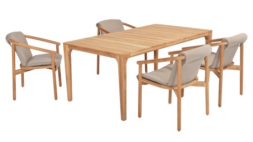 Met de Liam tafel van Taste 4SO kunt u genieten van de tijdloze charme en duurzaamheid van teakhout terwijl je dineert in de open lucht. Verkrijgbaar in volledig teakhout en teakhout-keramiek: