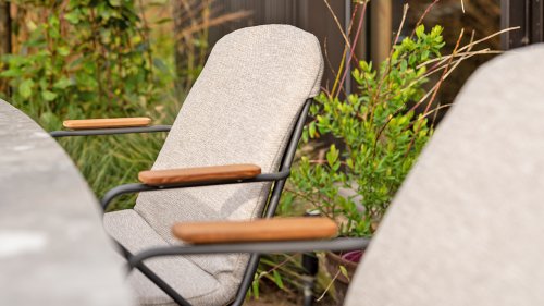 • In het oog springend ontwerp: De combinatie van antraciet RVS en teak armleggers geeft deze stoel een uniek en opvallend uiterlijk.
