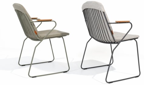 Er is niks zoals 4SO Veneto Uniek in zijn soort, de minimalistische Veneto dining stoel van dunne RVS buizen verkrijgbaar in de kleuren Antraciet, Terre & Olive. Een ergonomisch design, teak armleuningen en het kussen wat je makkelijk over de rugleuning schuift. Veneto is ook nog eens stapelbaar, werkelijk een one-of-a kind diningstoel.