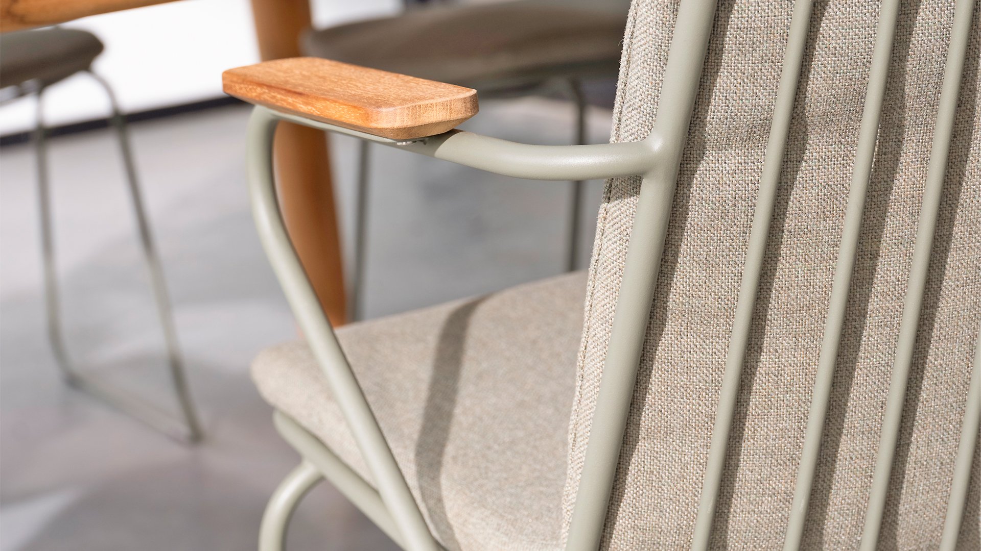 Er is niks zoals 4SO Veneto Uniek in zijn soort, de minimalistische Veneto dining stoel van dunne RVS buizen verkrijgbaar in de kleuren Antraciet, Terre & Olive. Een ergonomisch design, teak armleuningen en het kussen wat je makkelijk over de rugleuning schuift. Veneto is ook nog eens stapelbaar, werkelijk een one-of-a kind diningstoel.