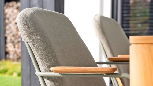 - In het oog springend ontwerp: De combinatie van antraciet RVS en teak armleggers geeft deze stoel een uniek en opvallend uiterlijk.