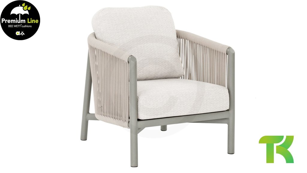 Bij Apple Bee gebruiken we Rope als hoogwaardig weefmateriaal voor buitenmeubilair. Dit speciaal ontwikkelde touw is sterk, duurzaam, onderhoudsvriendelijk, sneldrogend en UV-bestendig, waardoor het niet verkleurt in de zon. Het Rope bestaat uit waterbestendige, zachte vezels van hetzelfde materiaal als onze Olefin-stoffen, geweven rond een sterke polyester kern met een pvc-coating. Dit zorgt voor veel comfort, zelfs zonder kussens. Het reinigen is eenvoudig: verwijder los vuil, maak schoon met een mild schoonmaakmiddel en water, spoel goed af en laat het meubel volledig drogen. Regelmatig onderhoud houdt de meubels in optimale staat.