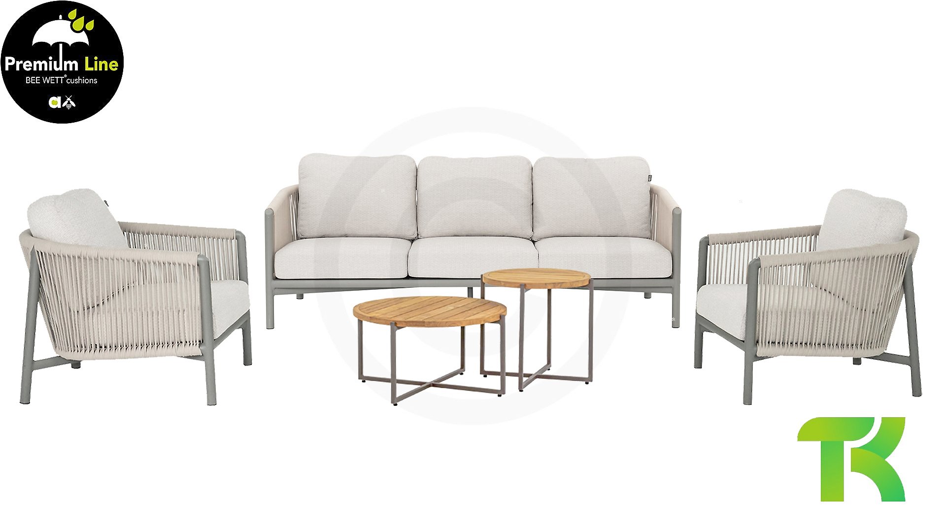 De Apple Bee Bora Bora Lounge collectie is minimalistisch, elegant en clean. Het kenmerkt zich door het tweelaags gevlochten rope, waar je doorheen kunt kijken. De fijne, gebogen vormen van dit meubel zorgt voor een strak maar toch elegant aanzicht. In combinatie het harmonieuze samenspel van de taupe kleuren en het rope is de luxueuze Bora Bora een prachtige toevoeging in de tuin. Uiteraard is deze lounge set ook weer uitgerust met de Bee Wett® kussens. Deze Bee Wett® kussens zijn speciale weerbestendige kussens. Het open weefsel aan de onderzijde van het kussen zorgt voor een perfecte drainage. Dit zorgt ervoor dat jouw Bee Wett kussen spectaculair veel sneller droogt dan andere kussens. Daarnaast is de stof bestand tegen rot en schimmels, Uv-bestendig, vochtwerend, zacht en comfortabel.
